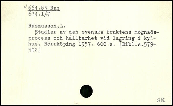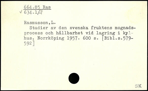 Studier av den svenska fruktens mognadsprocess och hållbarhet vid lagring i kyl-hus.