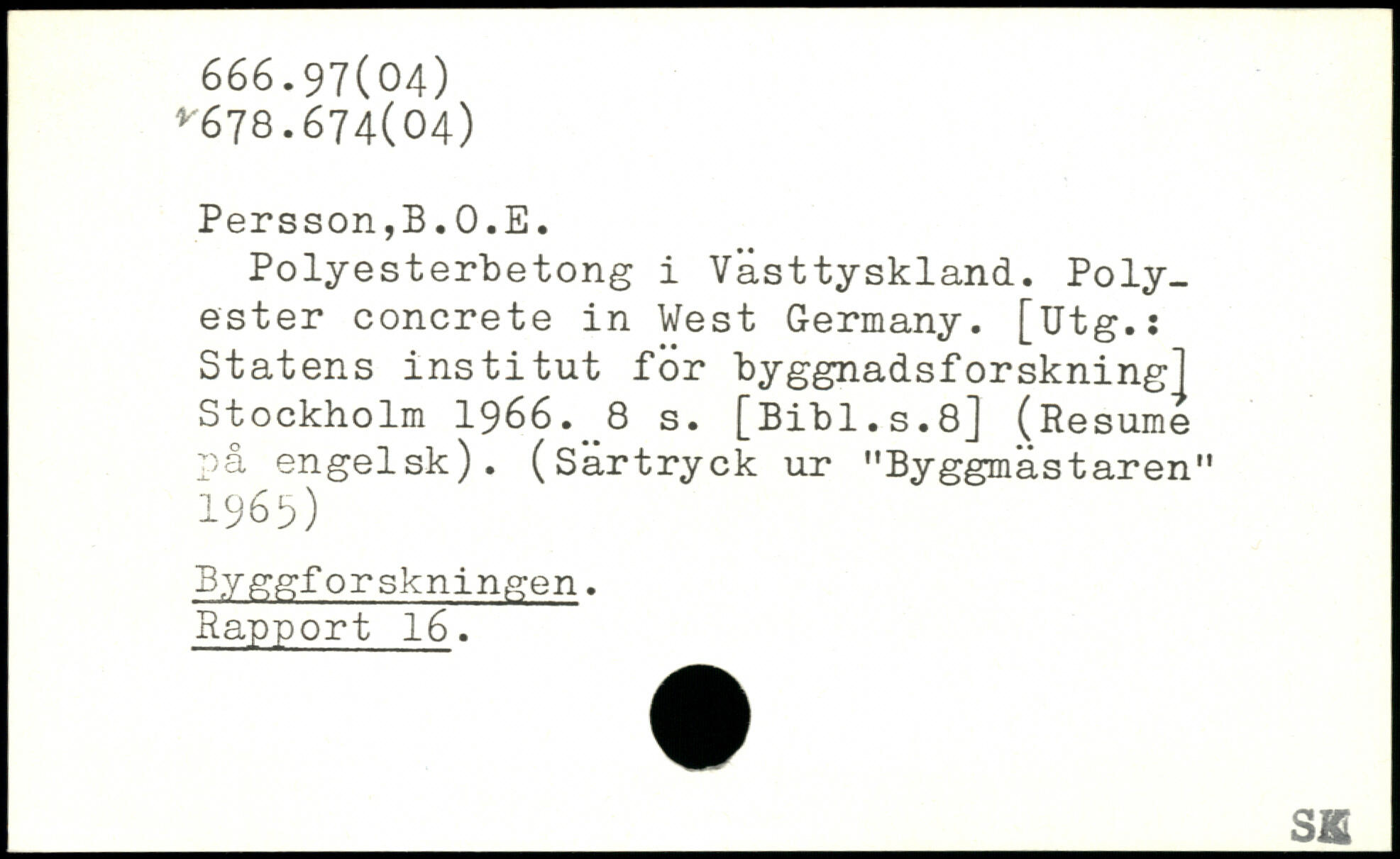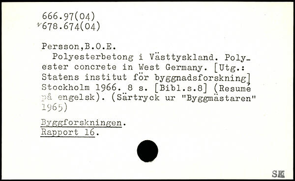 Polyesterbetong i Västtyskland. Polyester concrete in West Germany.