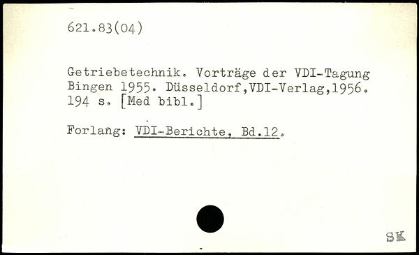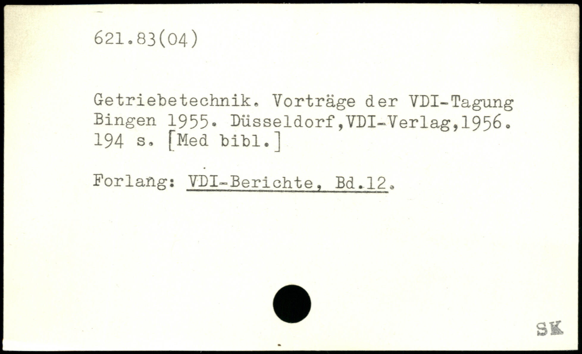 Getriebetechnik. Vorträge der VDI-Tagung Bingen 1955.