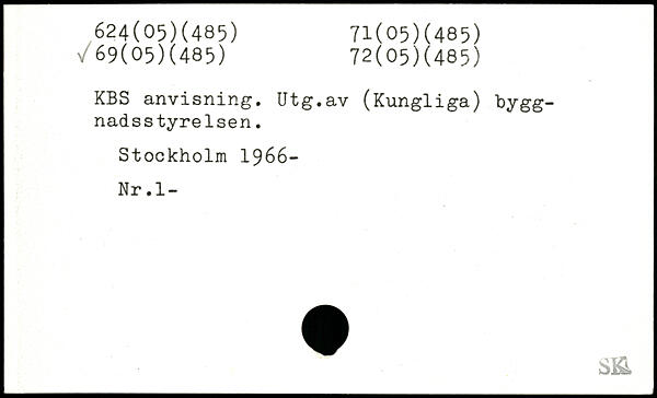 KBS anvisning. Utg.av (Kungliga) bygg-nadsstyrelsen.