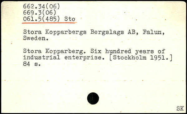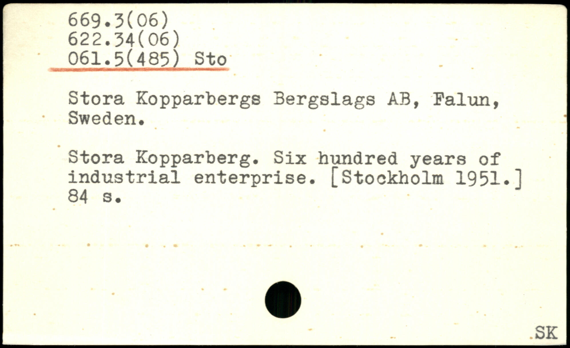 Stora Kopparbergs Bergslags AB, Falun,. Sweden. Stora Kopparberg. Six hundred years of industrial enterprise.