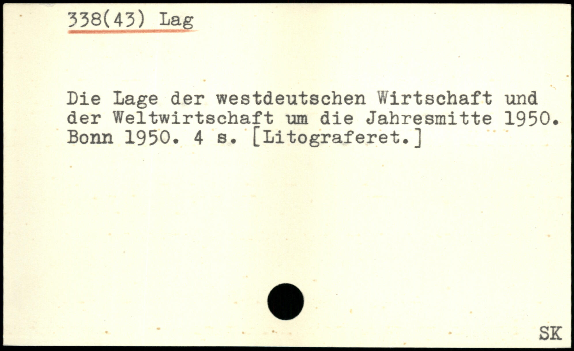 Die Lage der westdeutschen Wirtschaft und der Weltwirtschaft um die Jahresmitte 1950. Bonn 1950.
