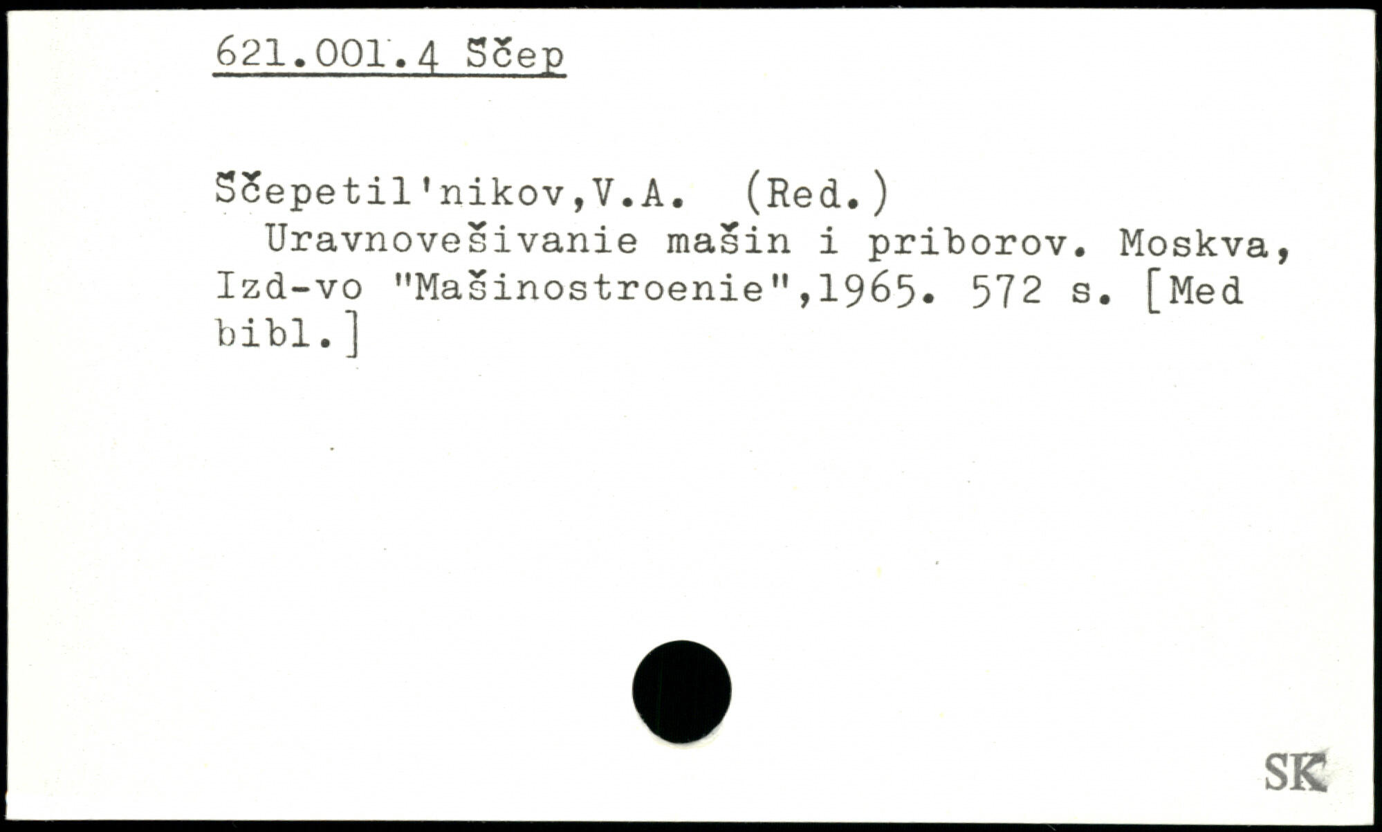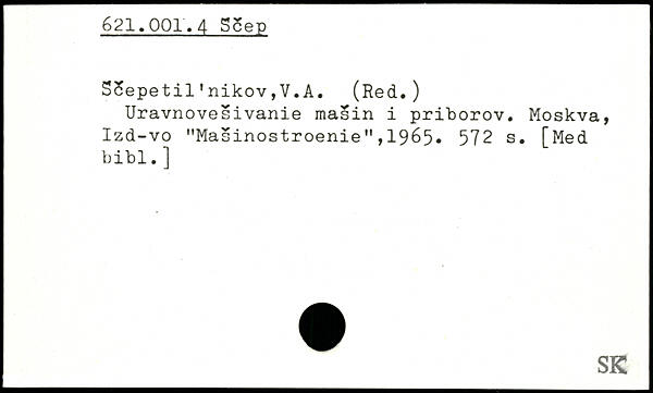 SSepetil1nikov,V.A. (Red.) Uravnovesivanie masin i priborov. Moskva, Izd-vo "Masinostroenie",1965.