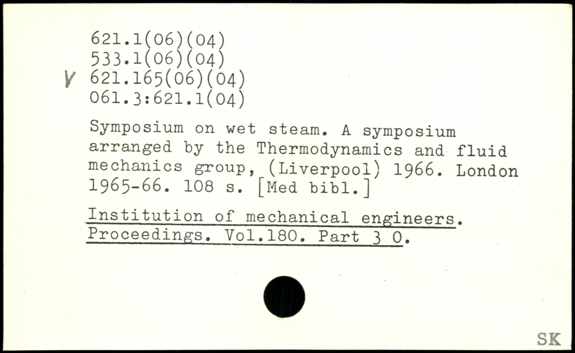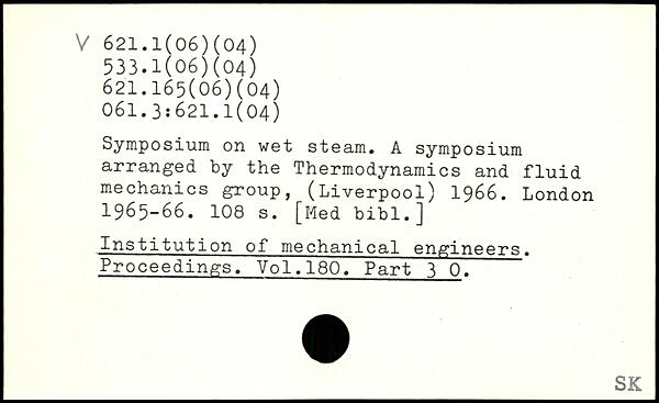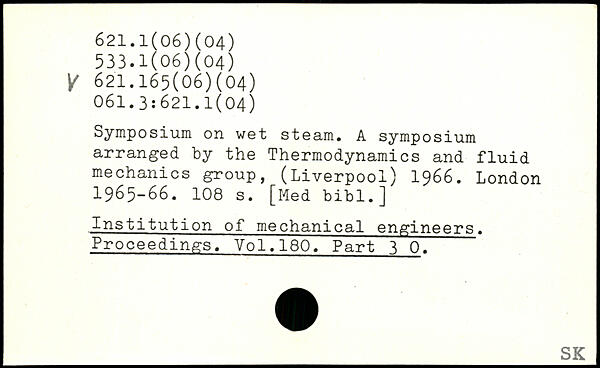 Symposium on wet steam. A symposium arranged by the Thermodynamics and fluid mechanics group, (Liverpool) 1966.