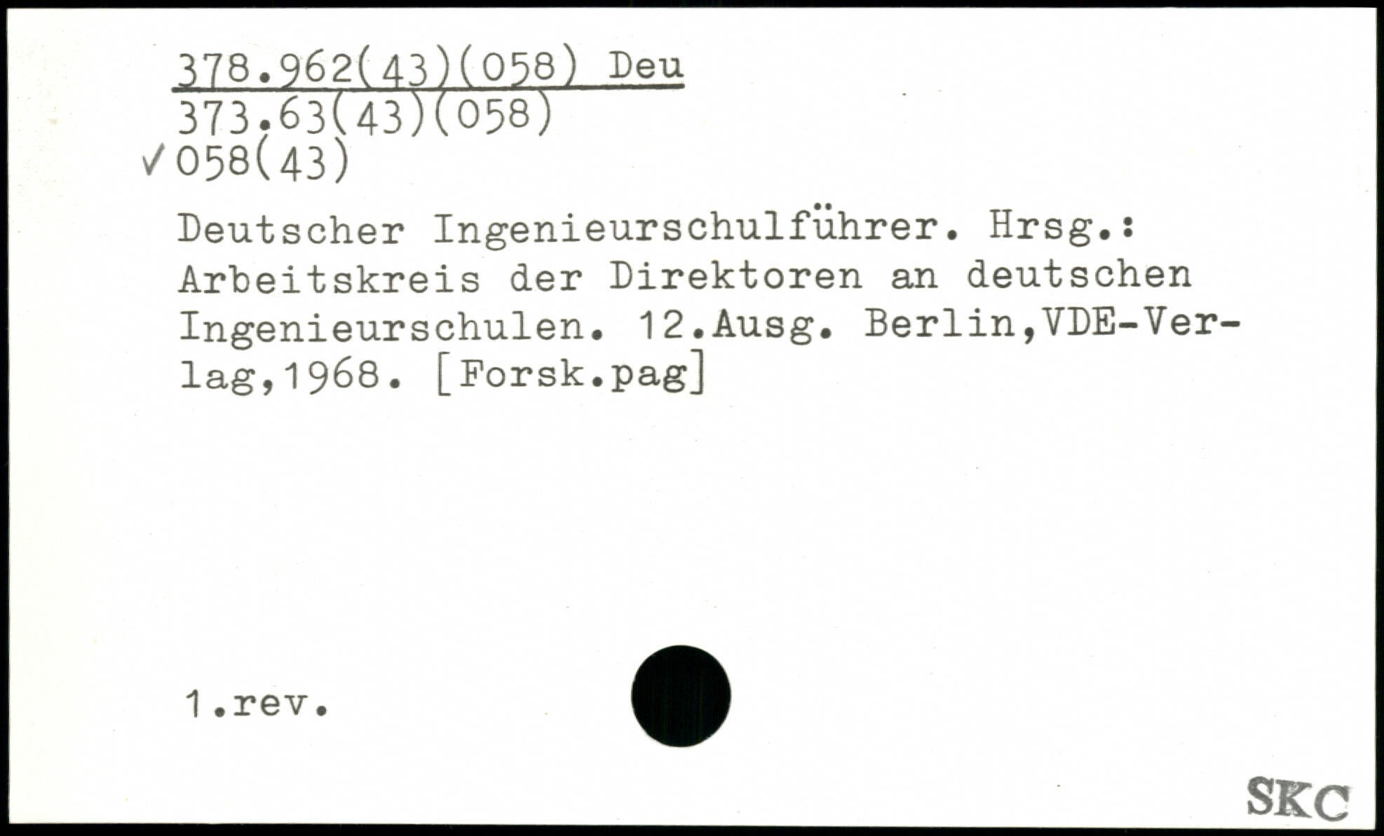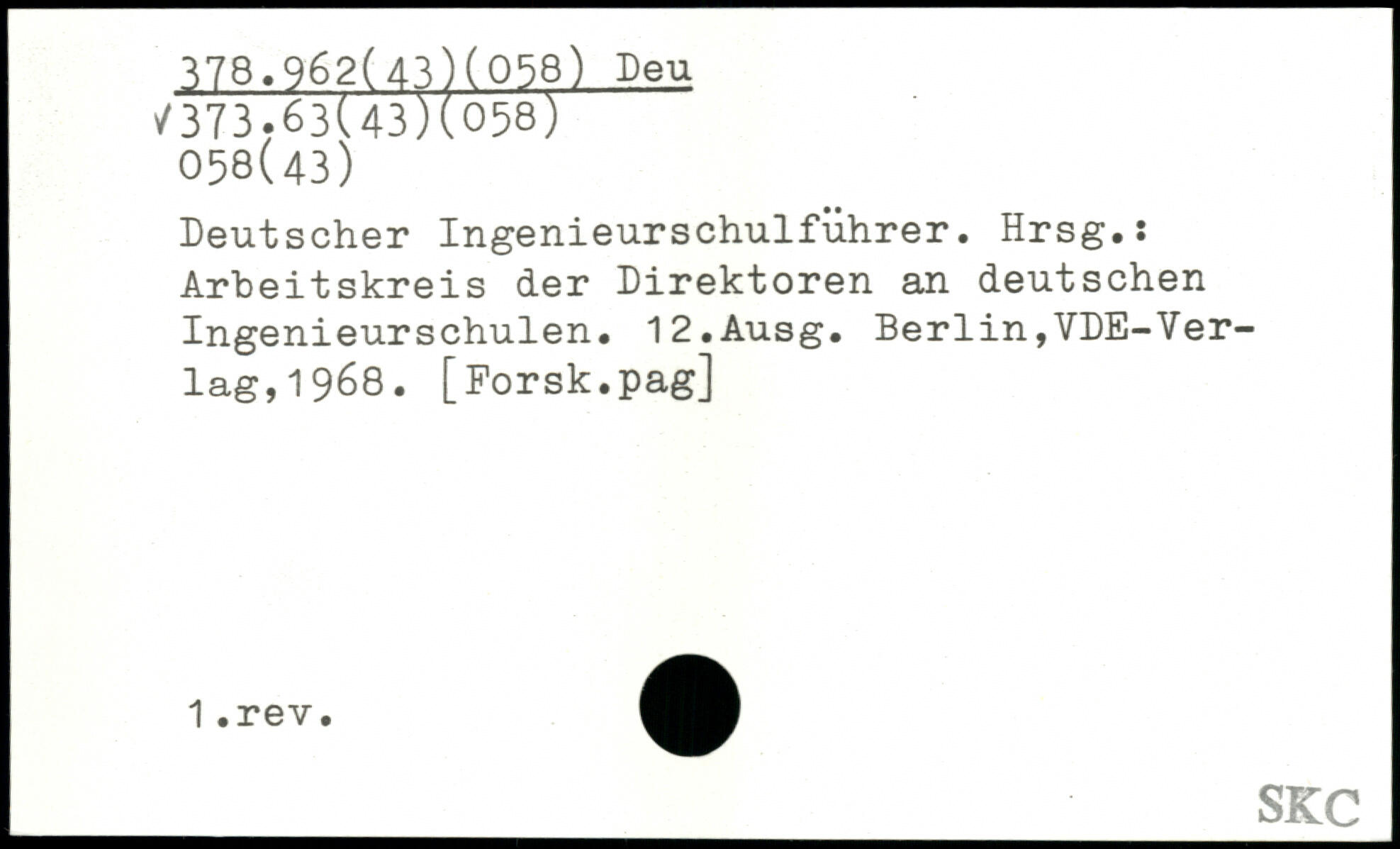 Deutscher Ingenieurschulführer. Hrsg.: Arbeitskreis der Direktoren an deutschen Ingenieurschulen. 12.Ausg.