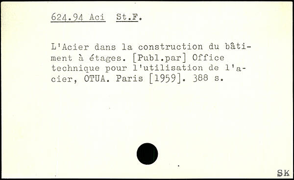 L’Acier dans la construction du bâtiment à étages. [Publ.par] Office technique pour l'utilisation de l'acier, OTUA.