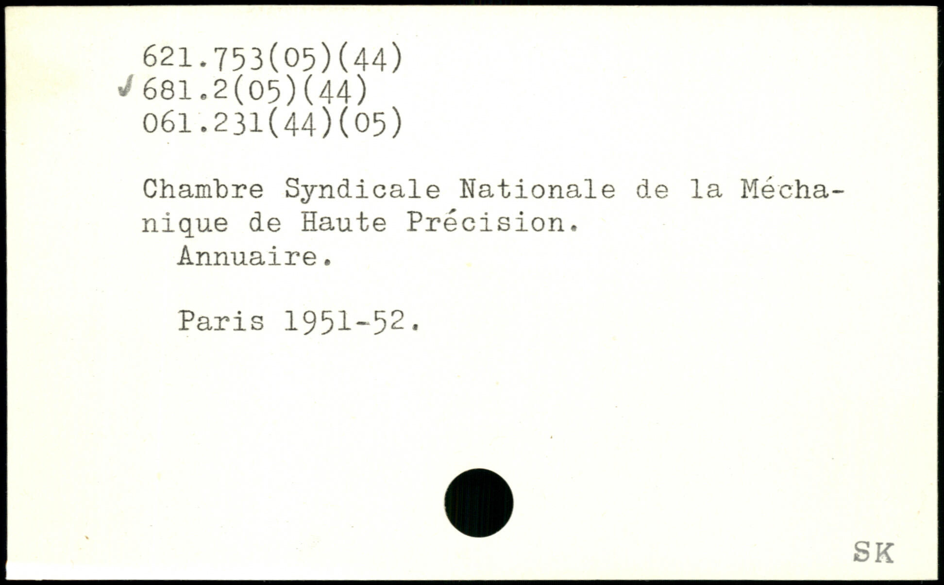 Chambre Syndicale Nationale de la Mécha-nique de Haute Précision. Annuaire.