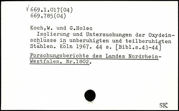 Isolierung und Untersuchungen der Oxydeinschlüsse in unberuhigten und teilberuhigten Stählen.