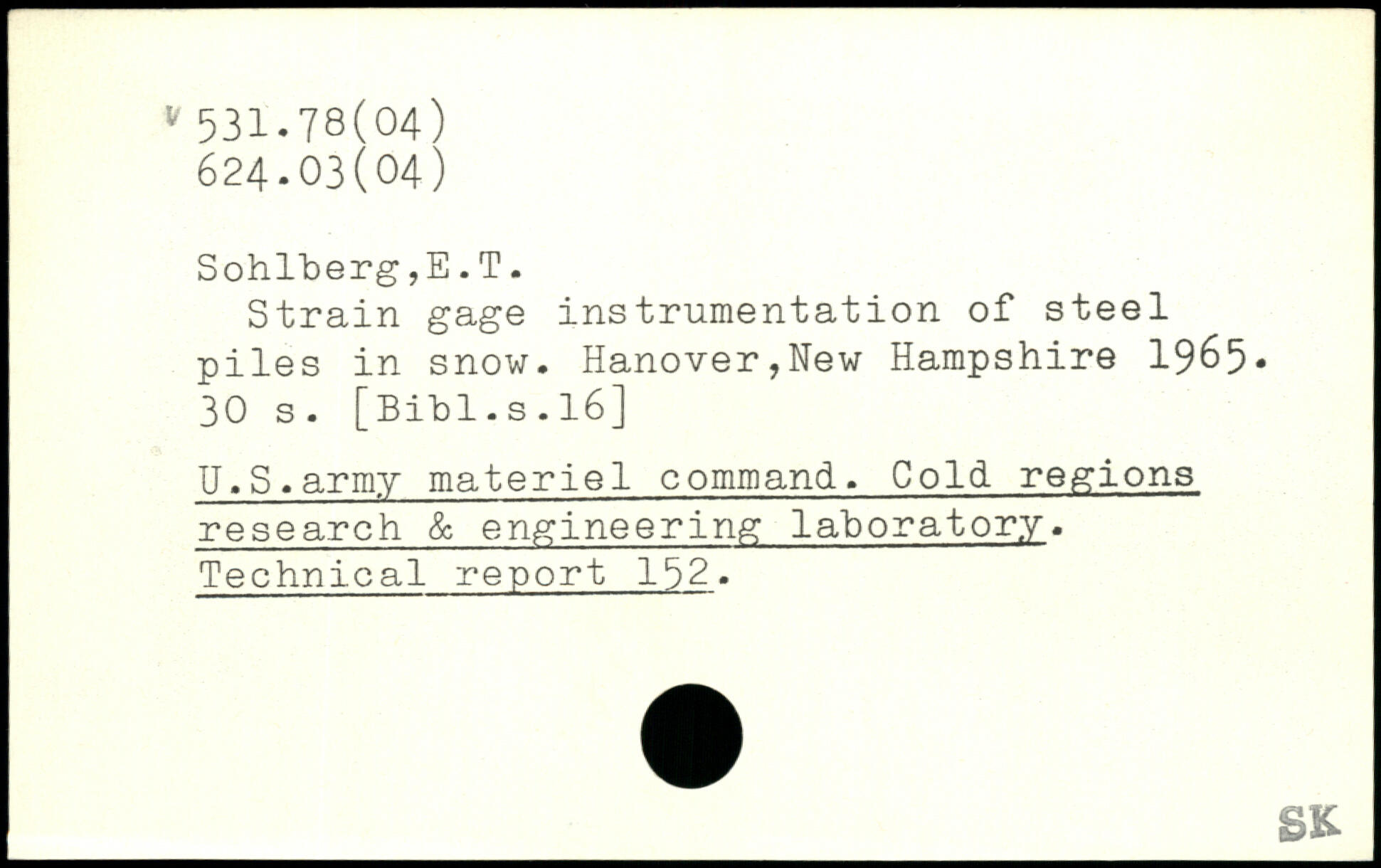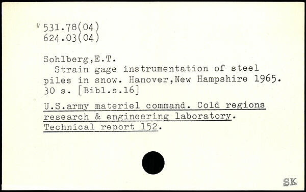 Strain gage instrumentation of steel piles in snow. Hanover,New Hampshire 1965.