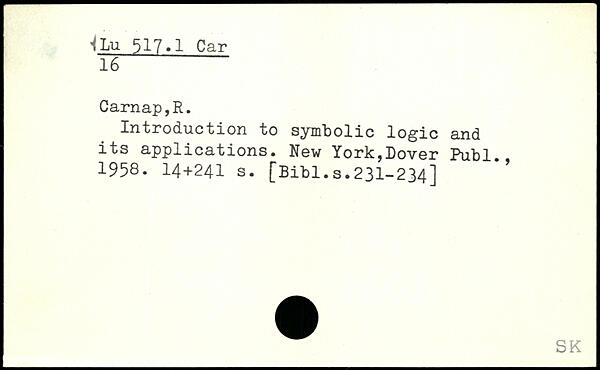 Introduction to symbolic logic and its applications. New York,Dover Publ. 1958.