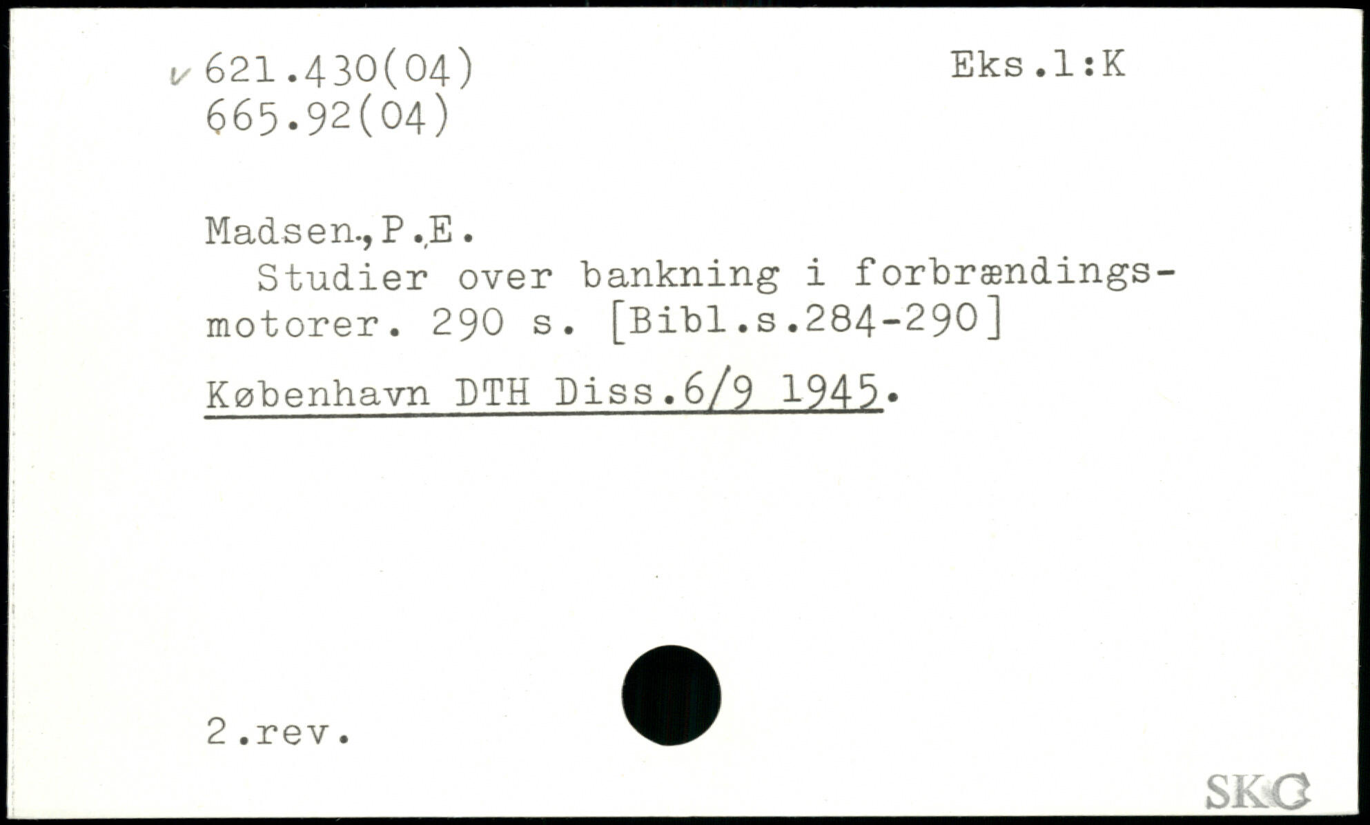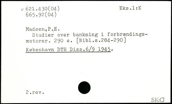 Madsen., P .,E. Studier over bankning i forbrændings-motorer.