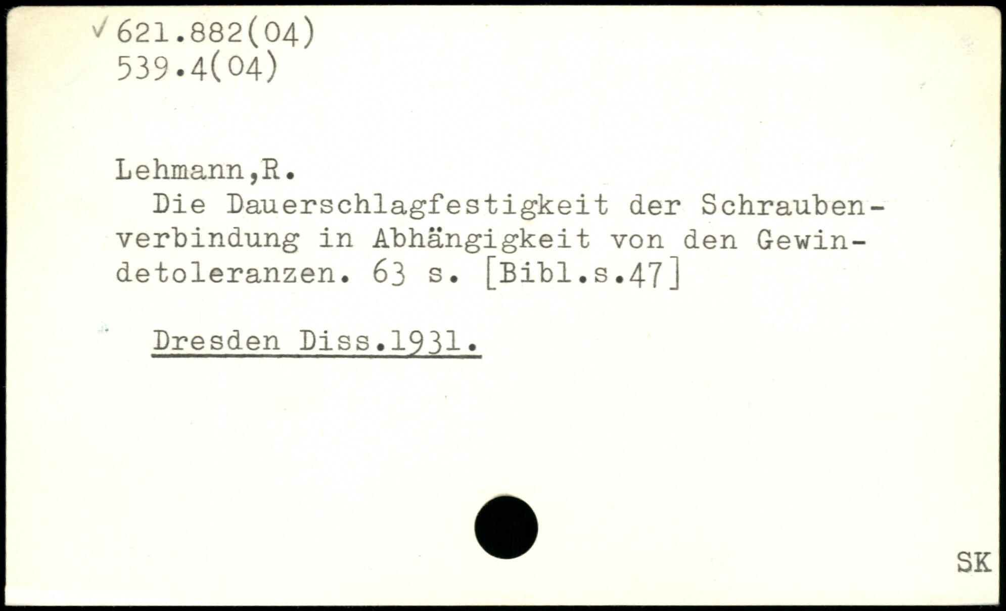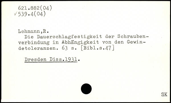 Die Dauerschlagfestigkeit der Schraubenverbindung in Abhängigkeit von den Gewindetoleranzen.