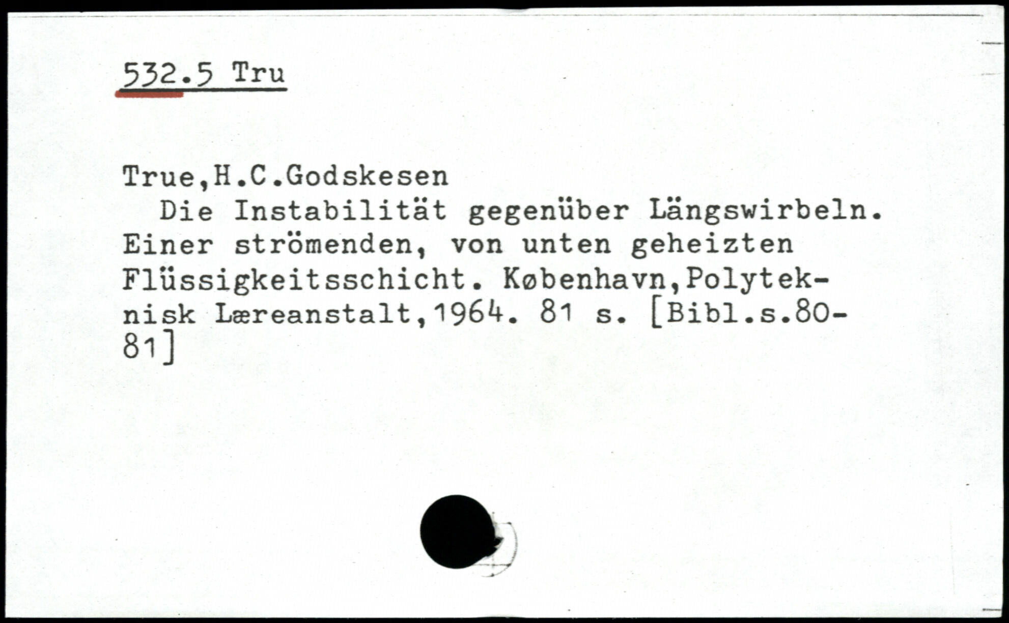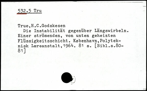 True,H.C.Godskesen Die Instabilität gegenüber Längswirbeln. Einer strömenden, von unten geheizten Flüssigkeitsschicht. København,Polyteknisk Læreanstalt,196^.