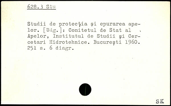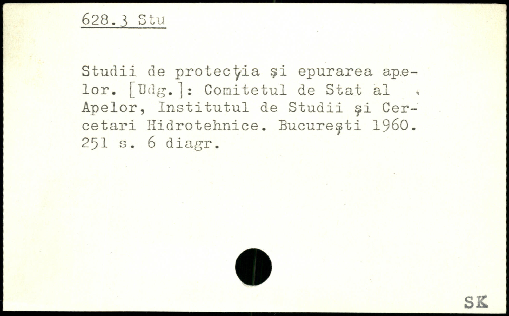 Studii de protec^ia çi epurarea ap.e-lor. [Udg.]: Comitetul de Stat al > Apelor, Institutul de Studii ^i Cer-cetari Iîidrotehnice. Bucure^ti 1960.
