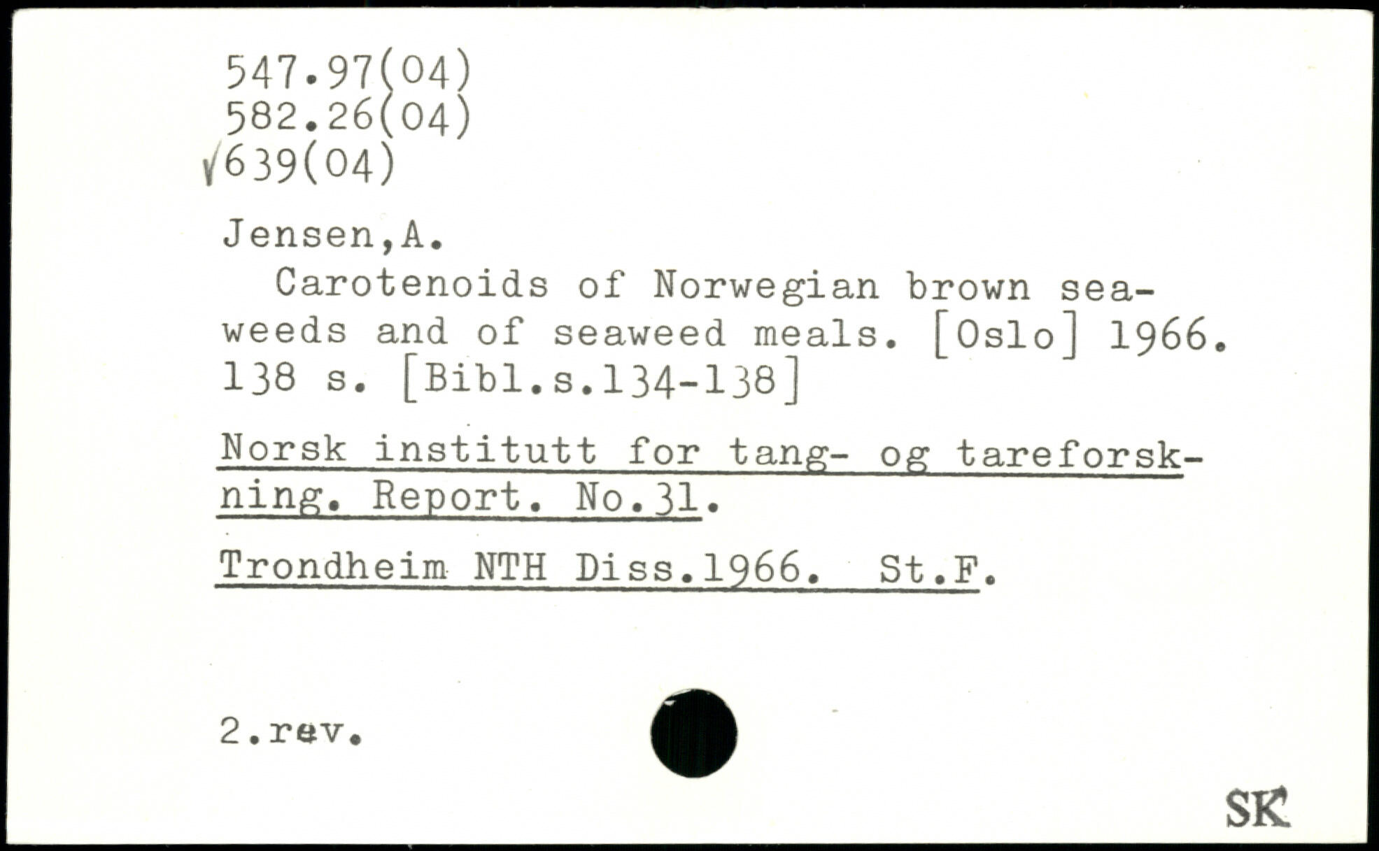 Carotenoids of Norwegian brown seaweeds and of seaweed meals. [Oslo] 1966.