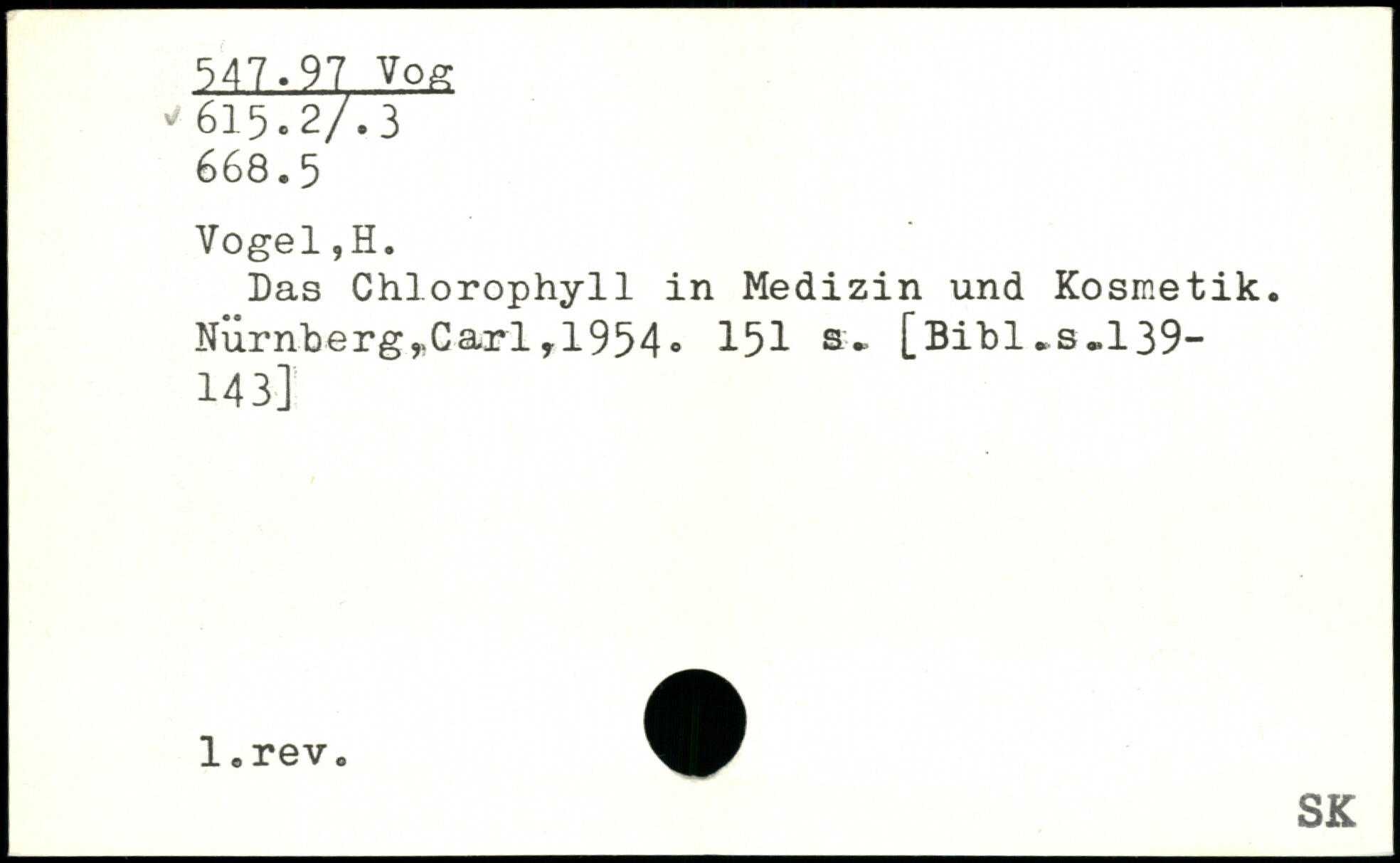 Das Chlorophyll in Medizin und Kosmetik. Nürnberg,.Carl,1954, 151 ff-