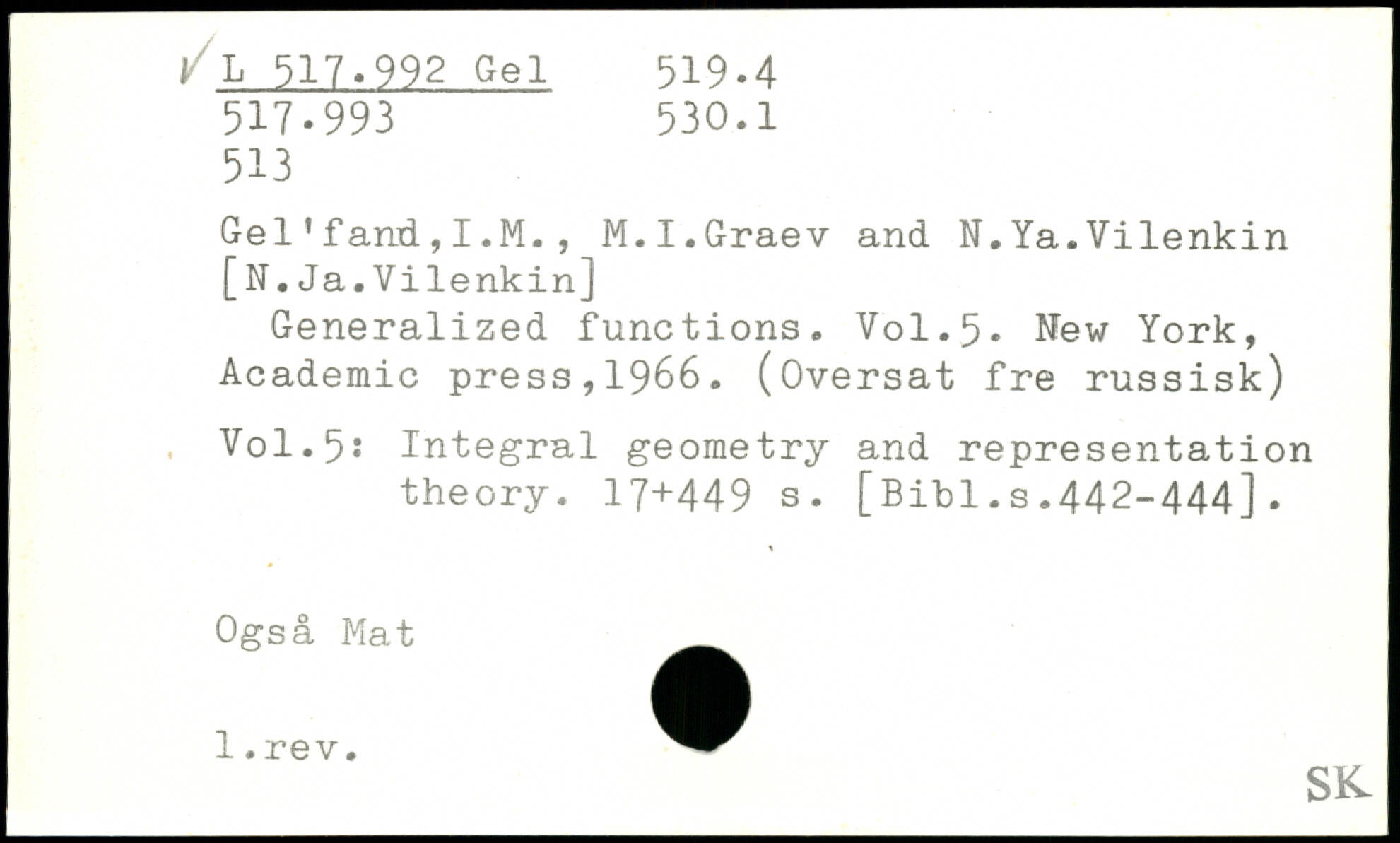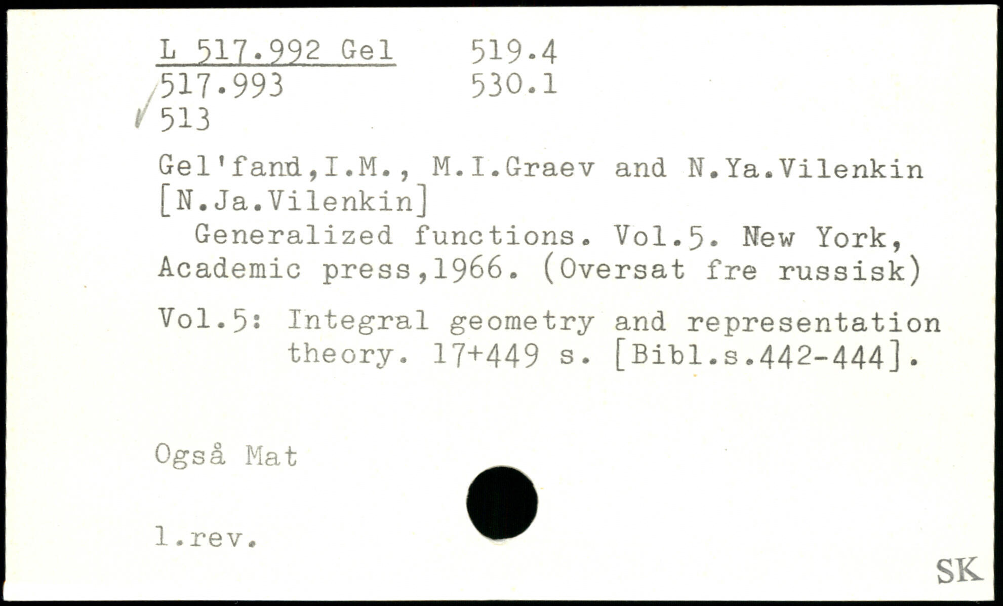 UDK: 517.992 Gel, 530.1, 513