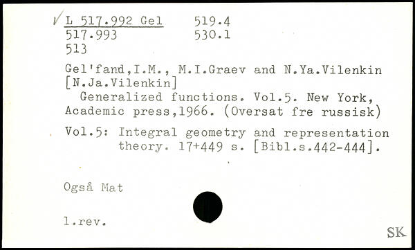 Gel1fand,I.M., M.I.Graev and N.Ya.Vilenkin [N.Ja.Vilenkin] Generalized functions.