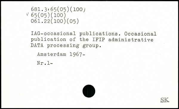 IAG-occasional publications. Occasional publication of the IFIP administrative DATA processing group. Amsterdam 1967- Nr.l-
