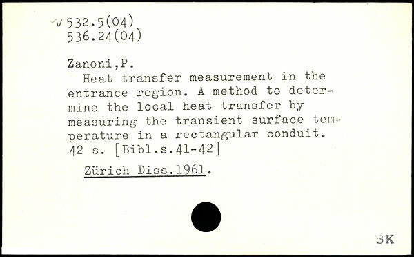 Heat transfer measurement in the entrance region. A method to determine the local heat transfer by measuring the transient surface temperature in a rectangular conduit.