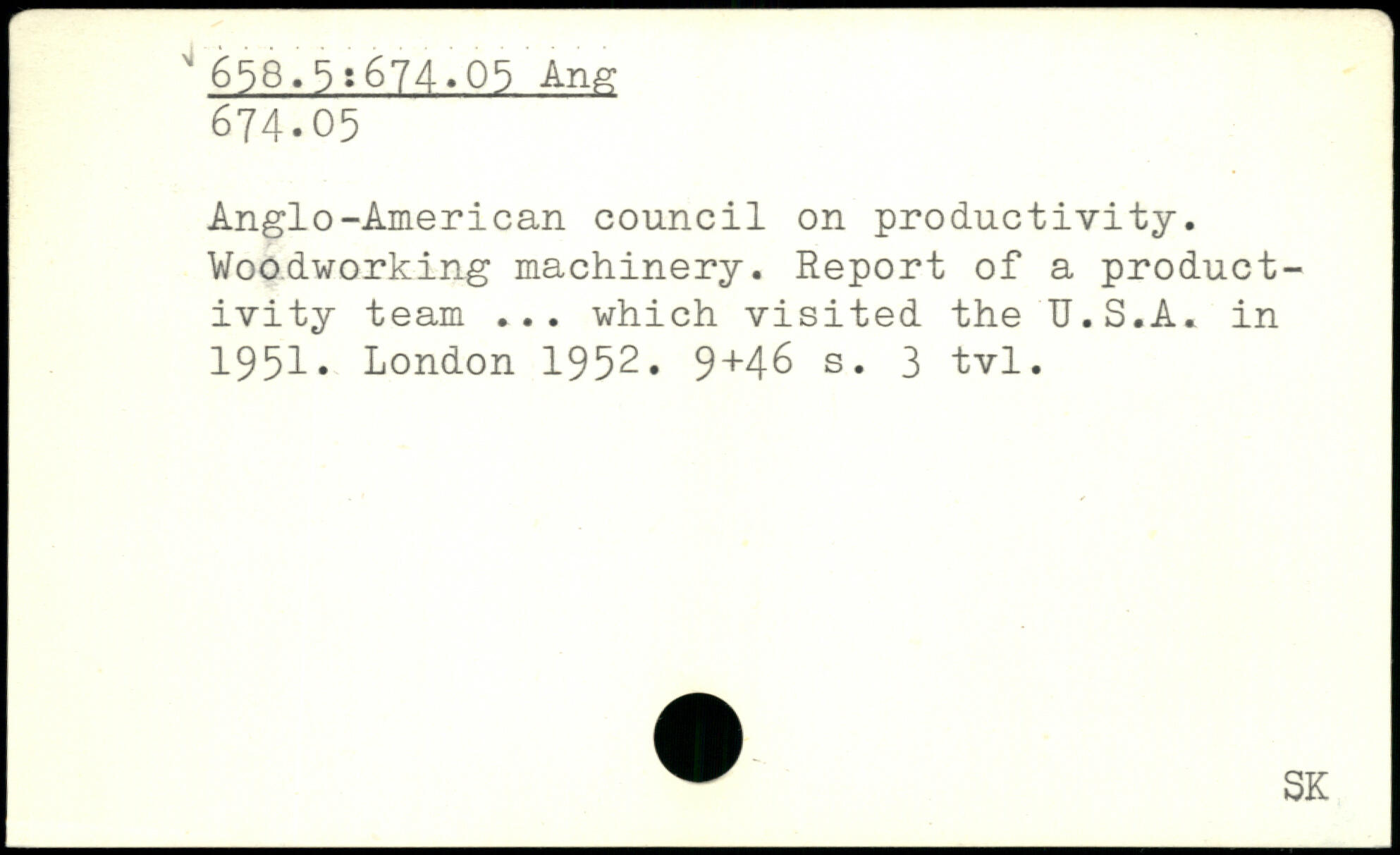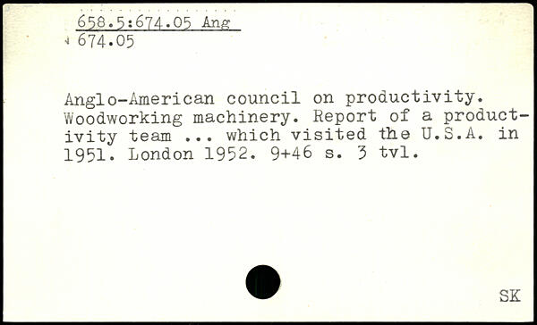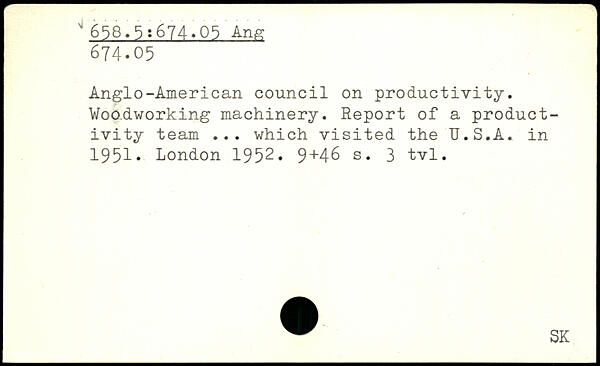 Anglo-American council on productivity. Woodworking machinery. Report of a productivity team ... which visited the U.S.A. in 1951.