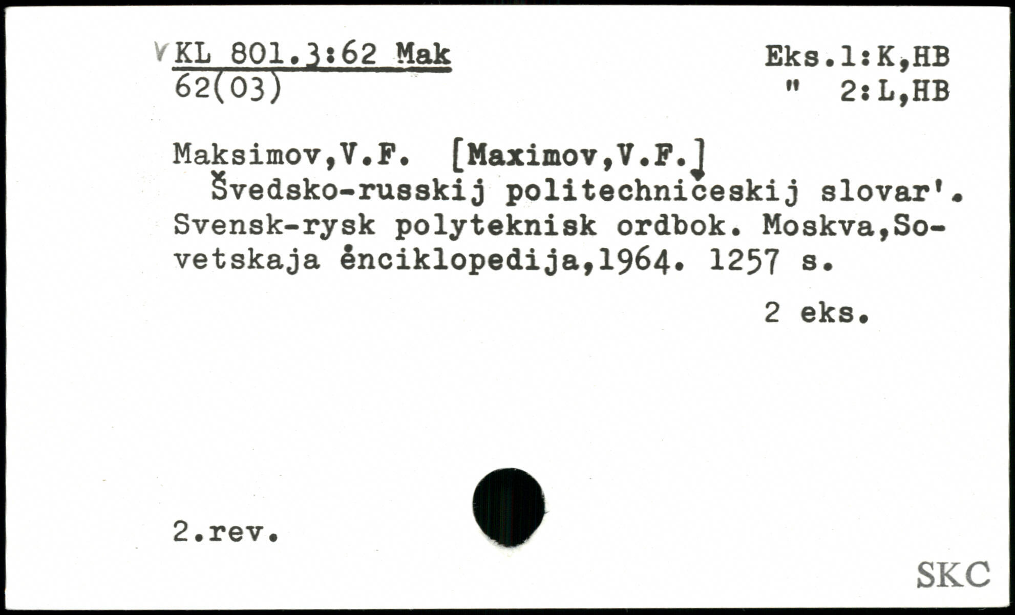 MaksimoVjV.P. [Maximov,V.F.J Svedsko-russkij politechniceskij slovar.. Svensk-rysk polyteknisk ordbok.