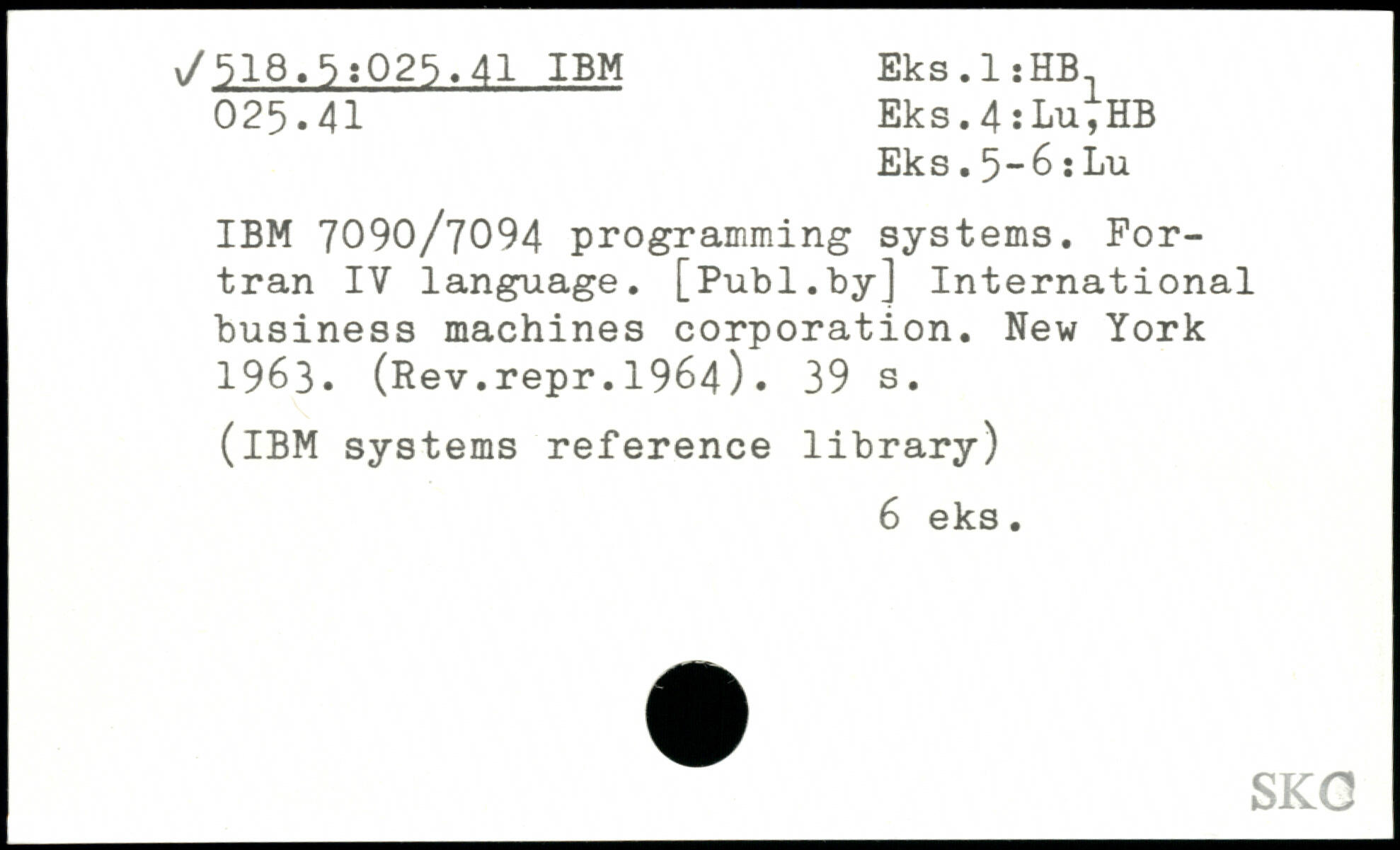 IBM 7090/7094 programming systems. Fortran IV language.