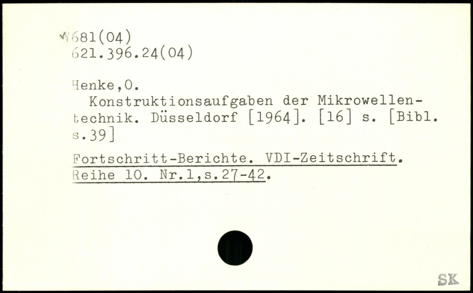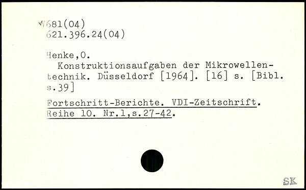 lenke,0. Konstruktionsaufgaben der Mikrowellentechnik. Düsseldorf [1964]. [l6] s.