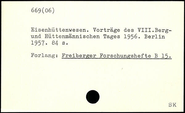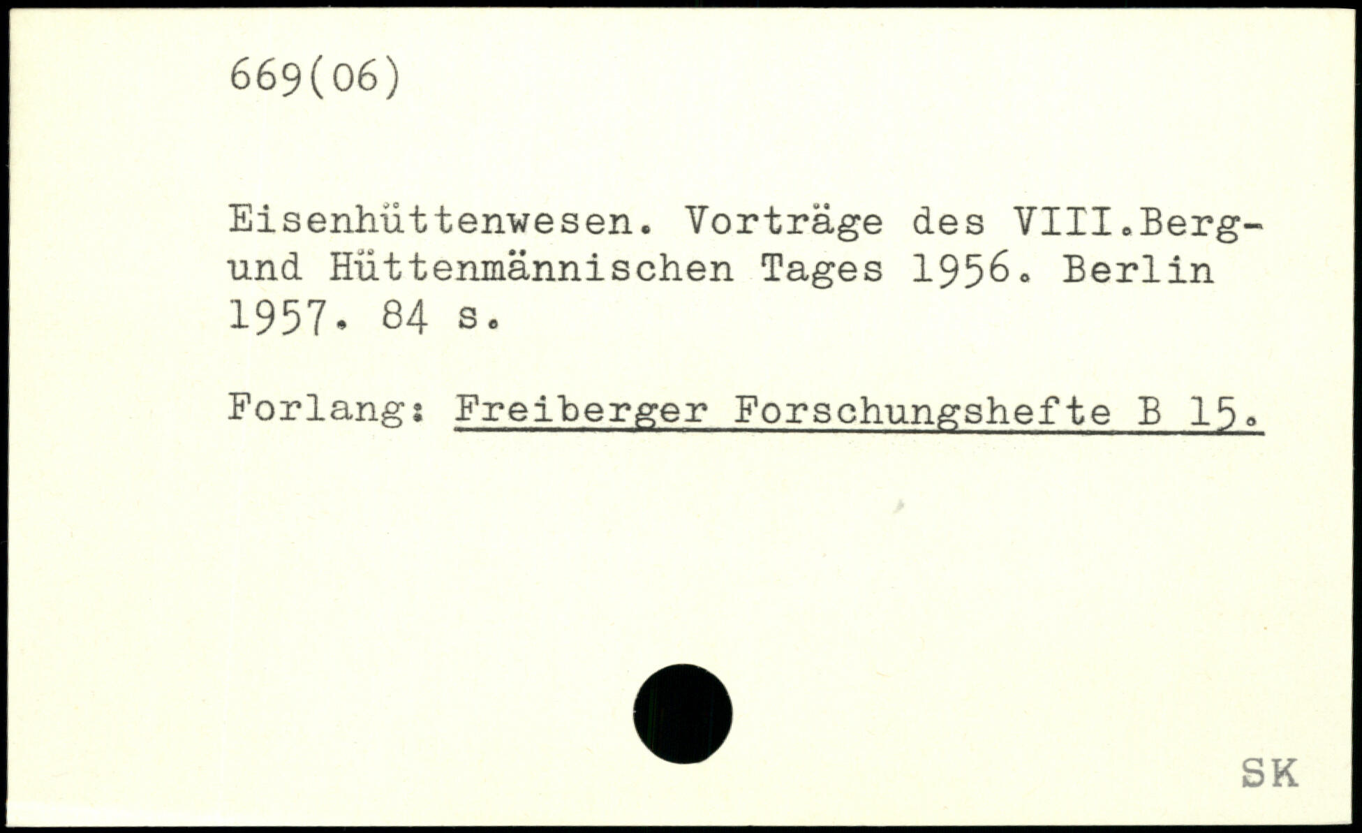 Eisenhüttenwesen. Vorträge des VIII.Berg-und Hüttenmännischen Tages 1956.