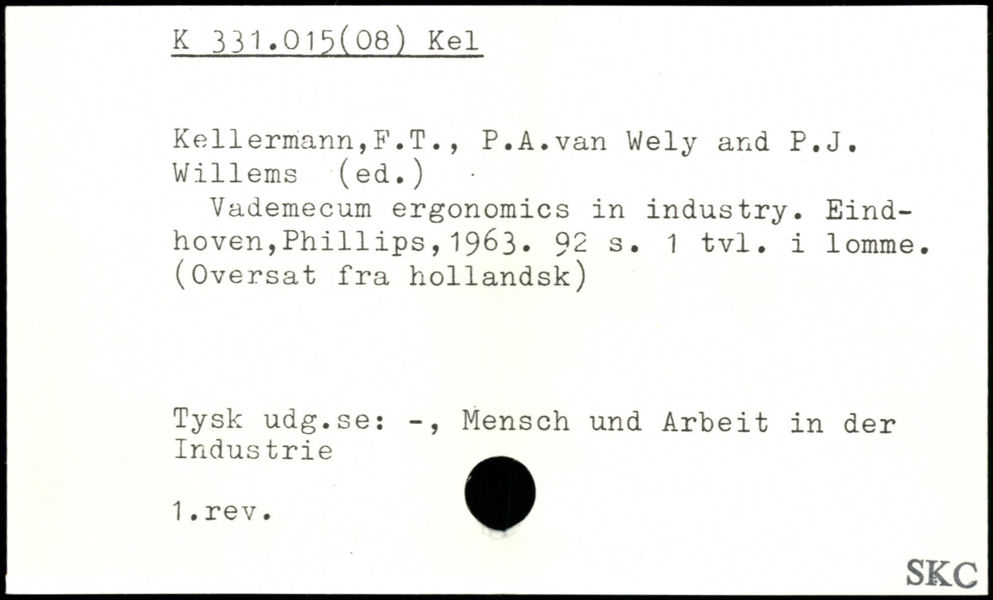 Vademecum ergonomics in industry. Eindhoven, Ph1111ps,1963.
