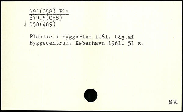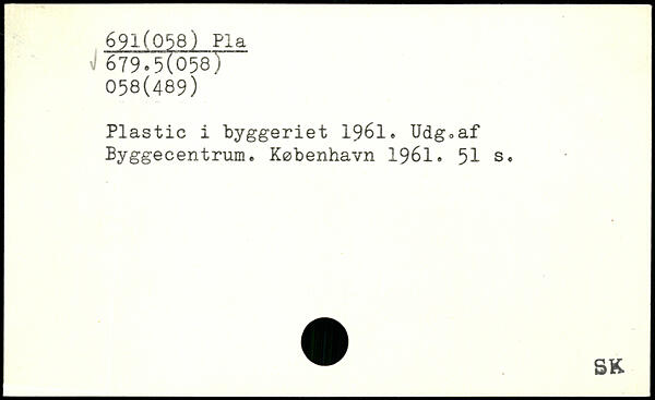 Plastic i byggeriet 1961. Udg0af Byggecentrum.