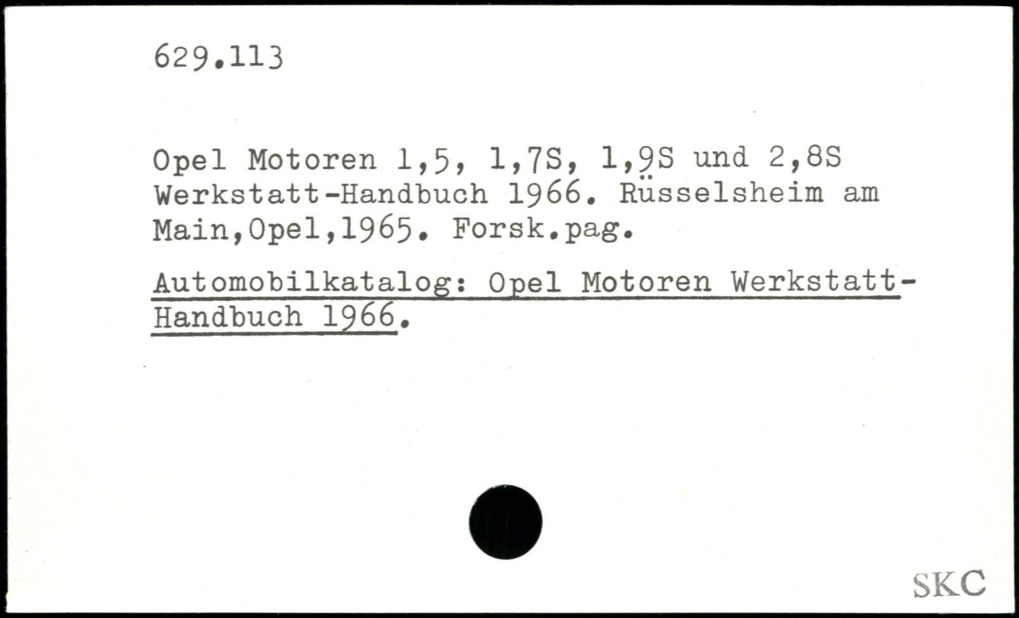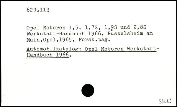 Opel Motoren 1,5, 1,7S, 1,9S und 2,8S Werkstatt-Handbuch 1966.