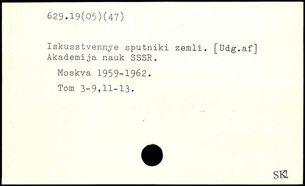 Iskusstvennye sputniki zemli. [Udg.af] Akademija nauk SSSR.