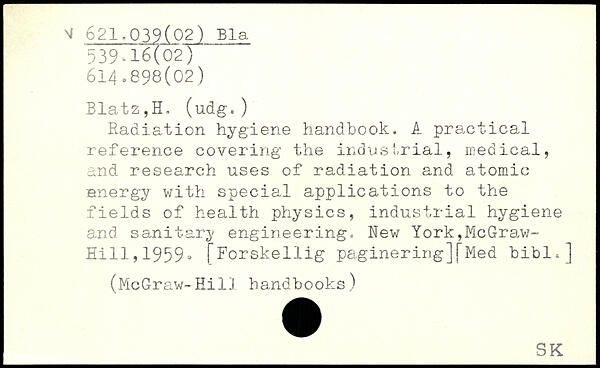 Radiation hygiene handbook. A practical reference covering the industrial, medical, and research uses of radiation and atomic energy with special applications to the fields of health physics, industrial hygiene and sanitary engineering.