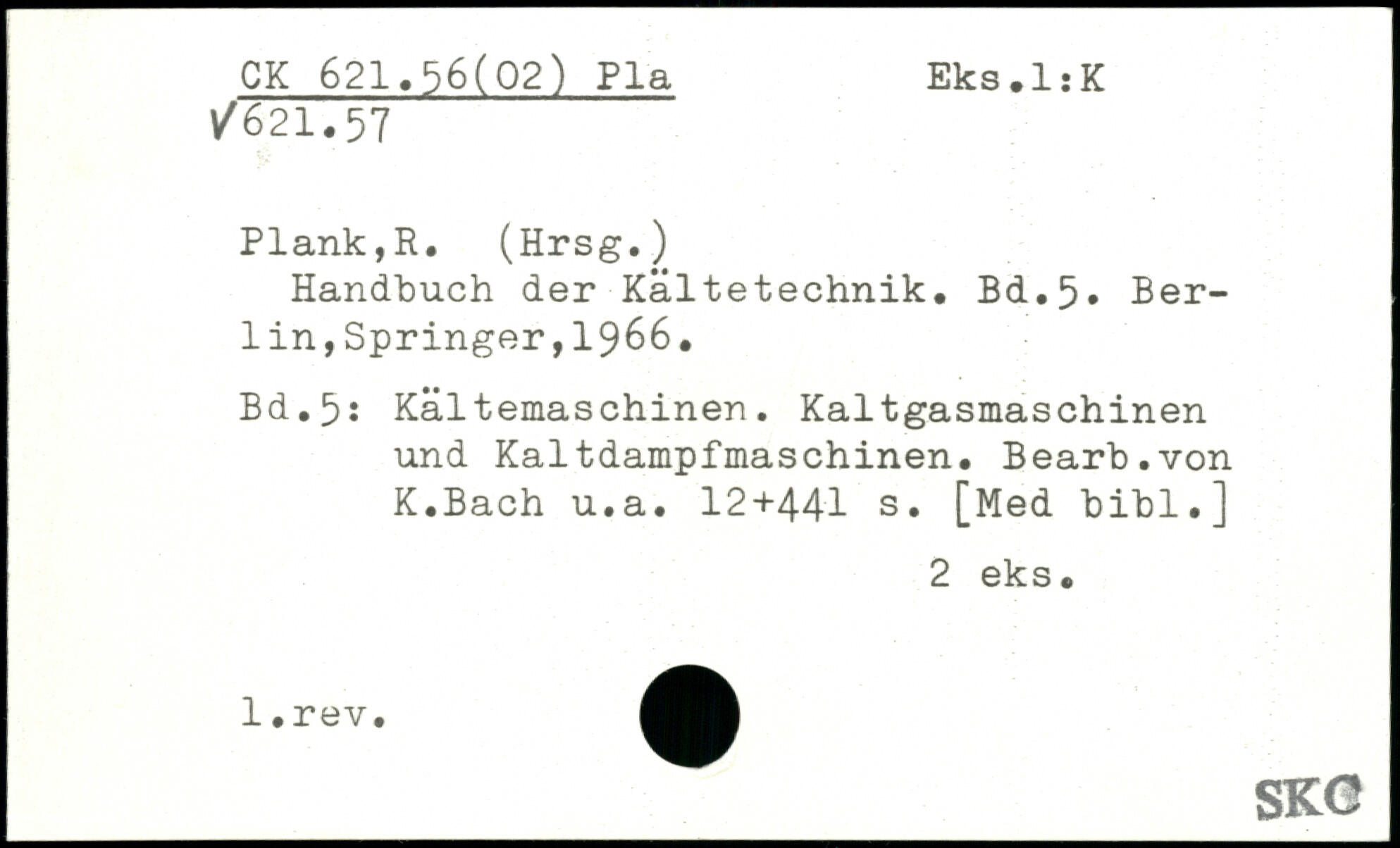 Handbuch der Kältetechnik.