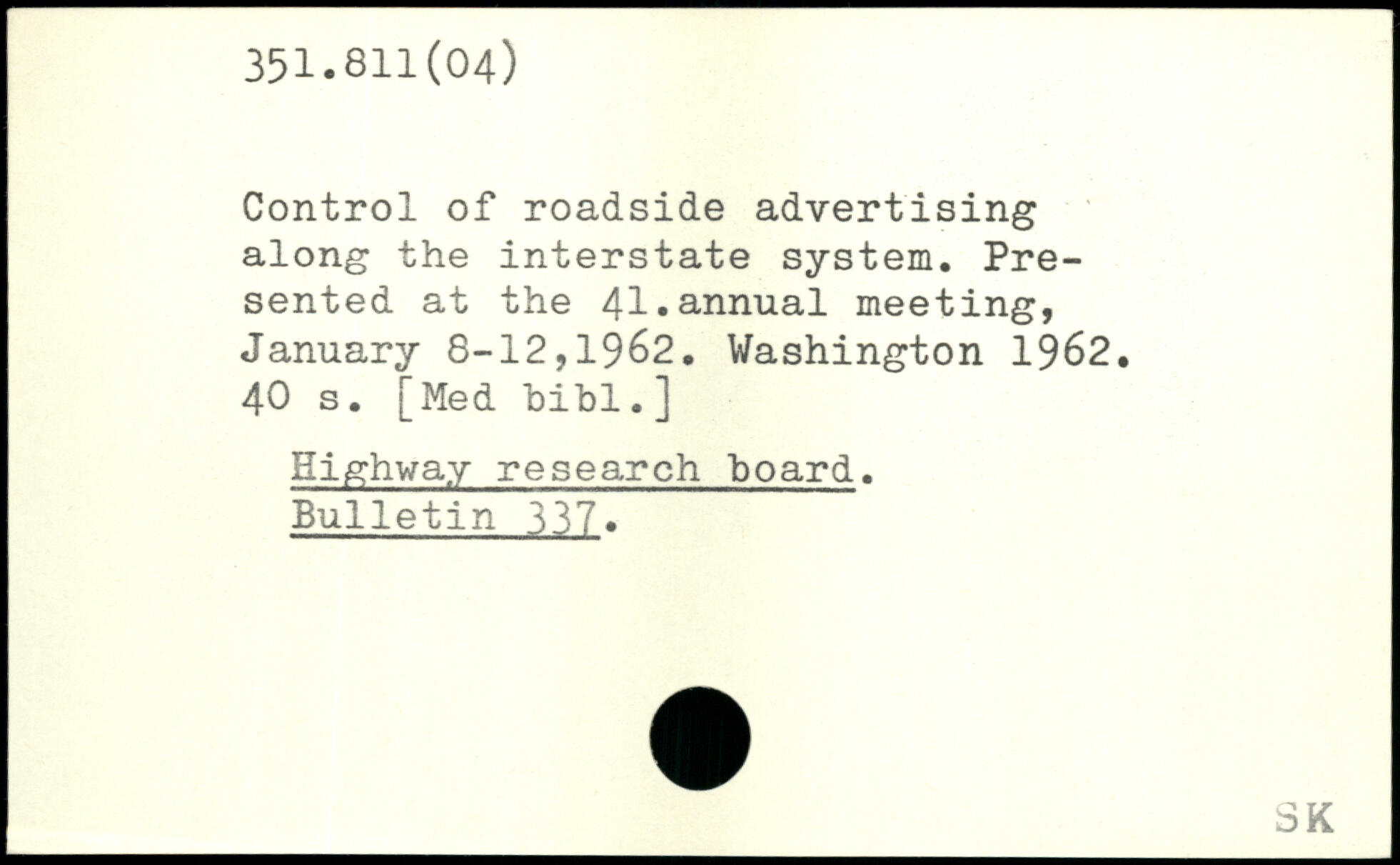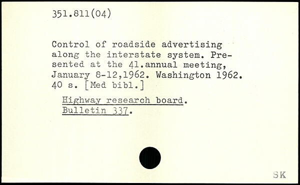 Control of roadside advertising along the interstate system. Presented at the 41,annual meeting, January 8-12,1962.