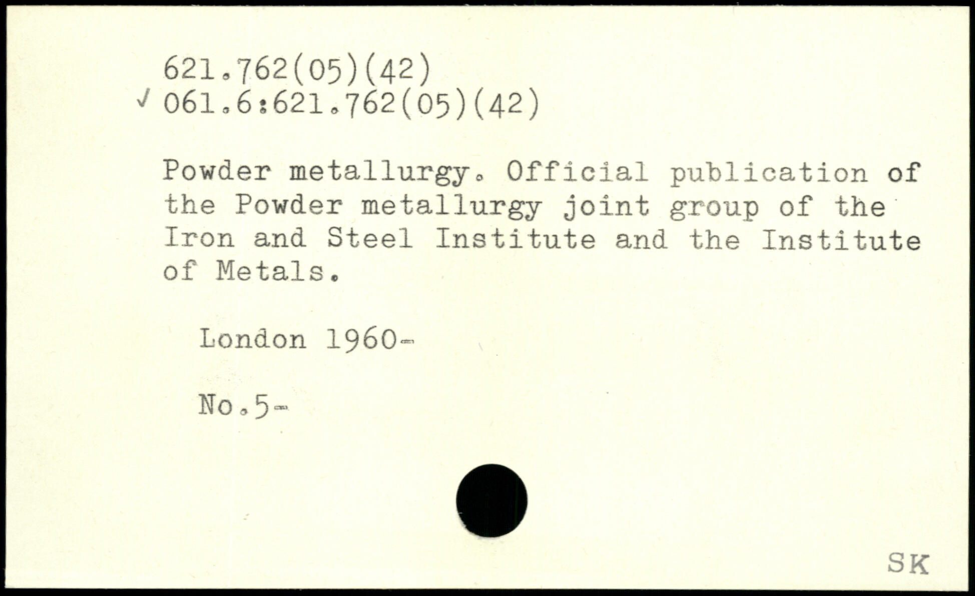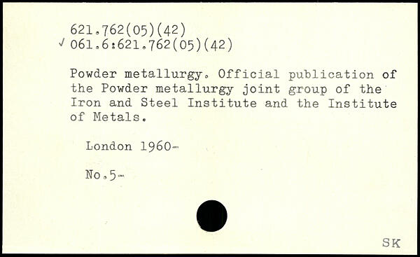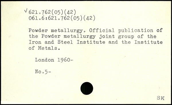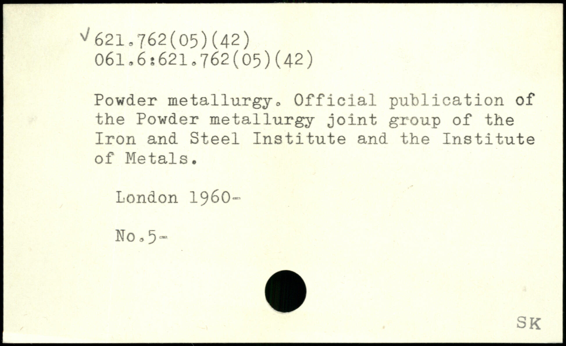 Powder metallurgy, Official publication of the Powder metallurgy joint group of the Iron and Steel Institute and the Institute of Metals.