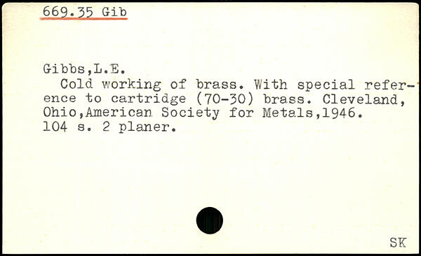 Cold working of brass. With special reference to cartridge (70-30) brass.