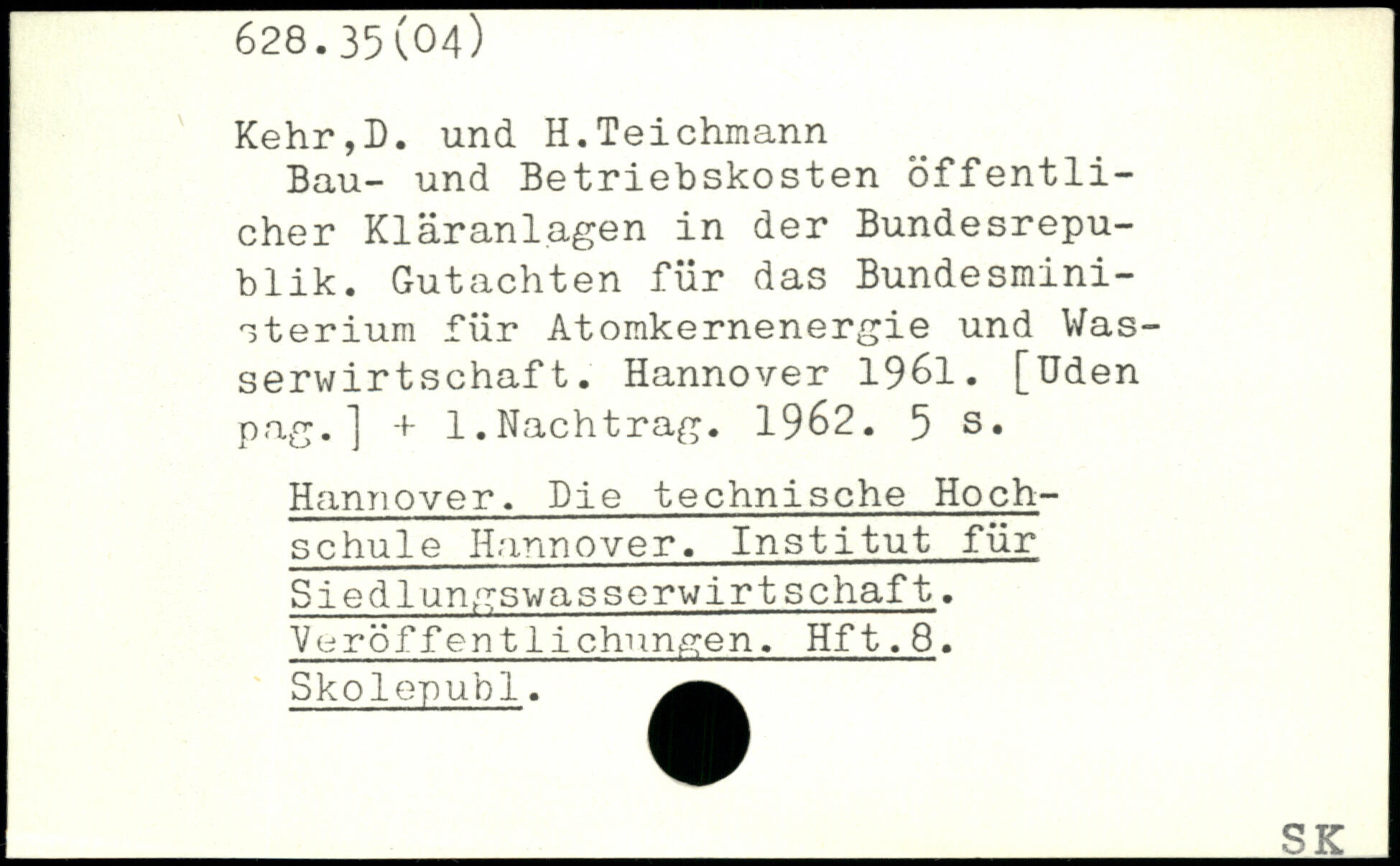 Bau- und Betriebskosten öffentlicher Kläranlagen in der Bundesrepublik. Gutachten für das Bundesministerium für Atomkernenergie und Wasserwirtschaft.
