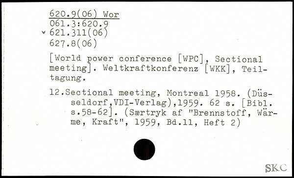 UDK: 620.9(06) Wor, 061.3:620.9, 621.311(06), 627.8(06)