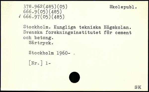 Stockholm. Kungliga tekniska Högskolan. Svenska forskningsinstitutet för cement och betong, Särtryck