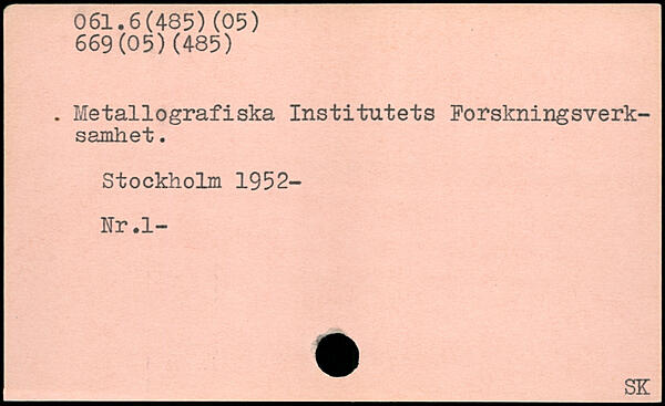 Metallografiska Institutets Forskningsverksamhet.