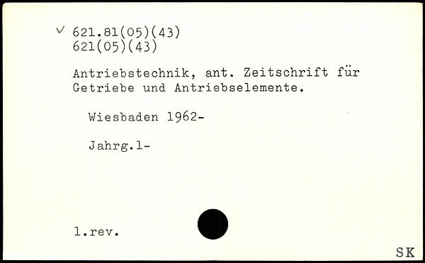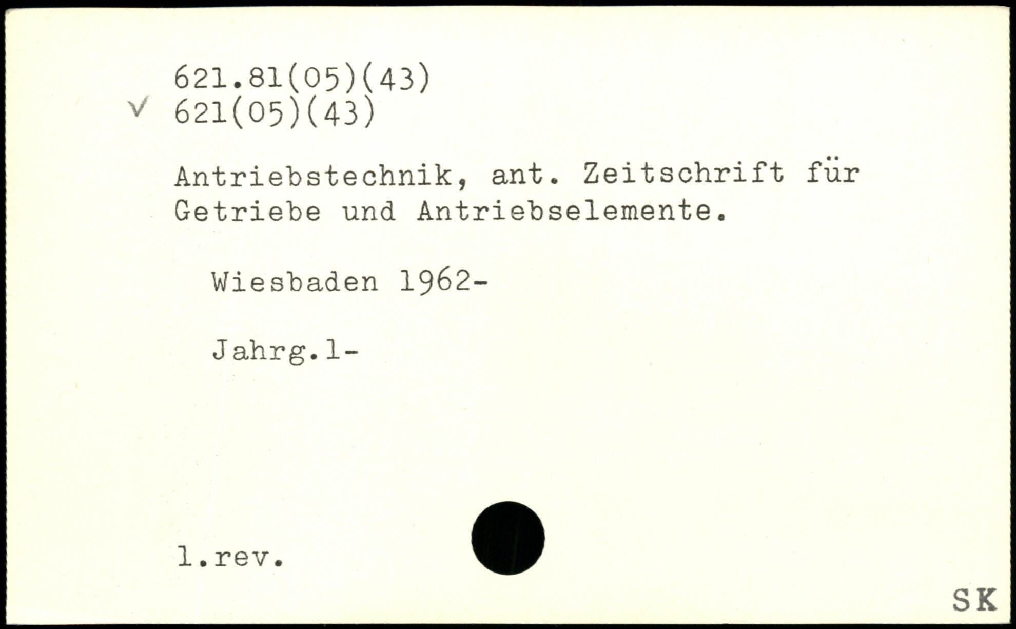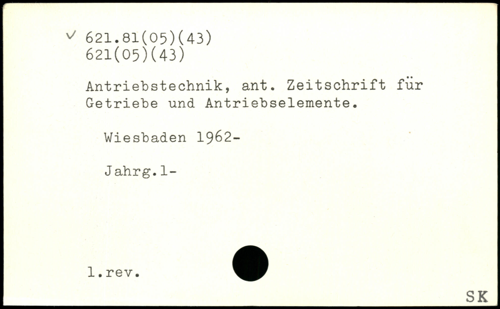 Antriebstechnik, ant. Zeitschrift für Getriebe und Antriebselemente. Wiesbaden 1962- J ahrg.1-