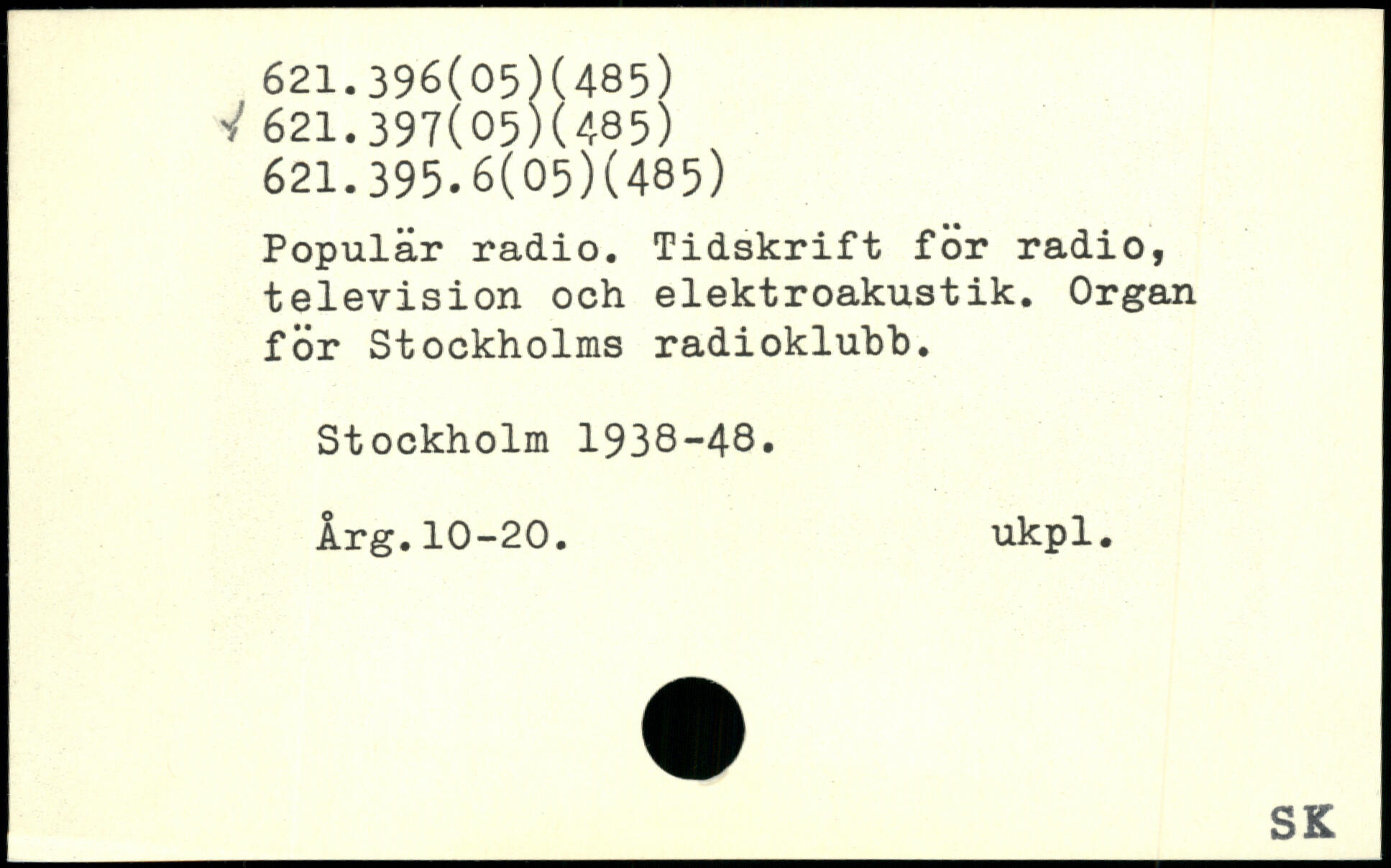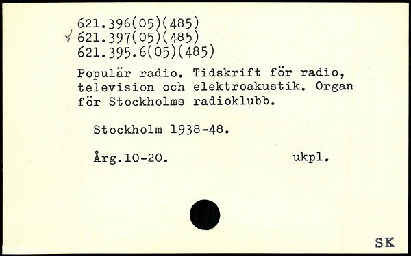 Populär radio. Tidskrift for radio, television och elektroakustik. Organ för Stockholms radioklubb.