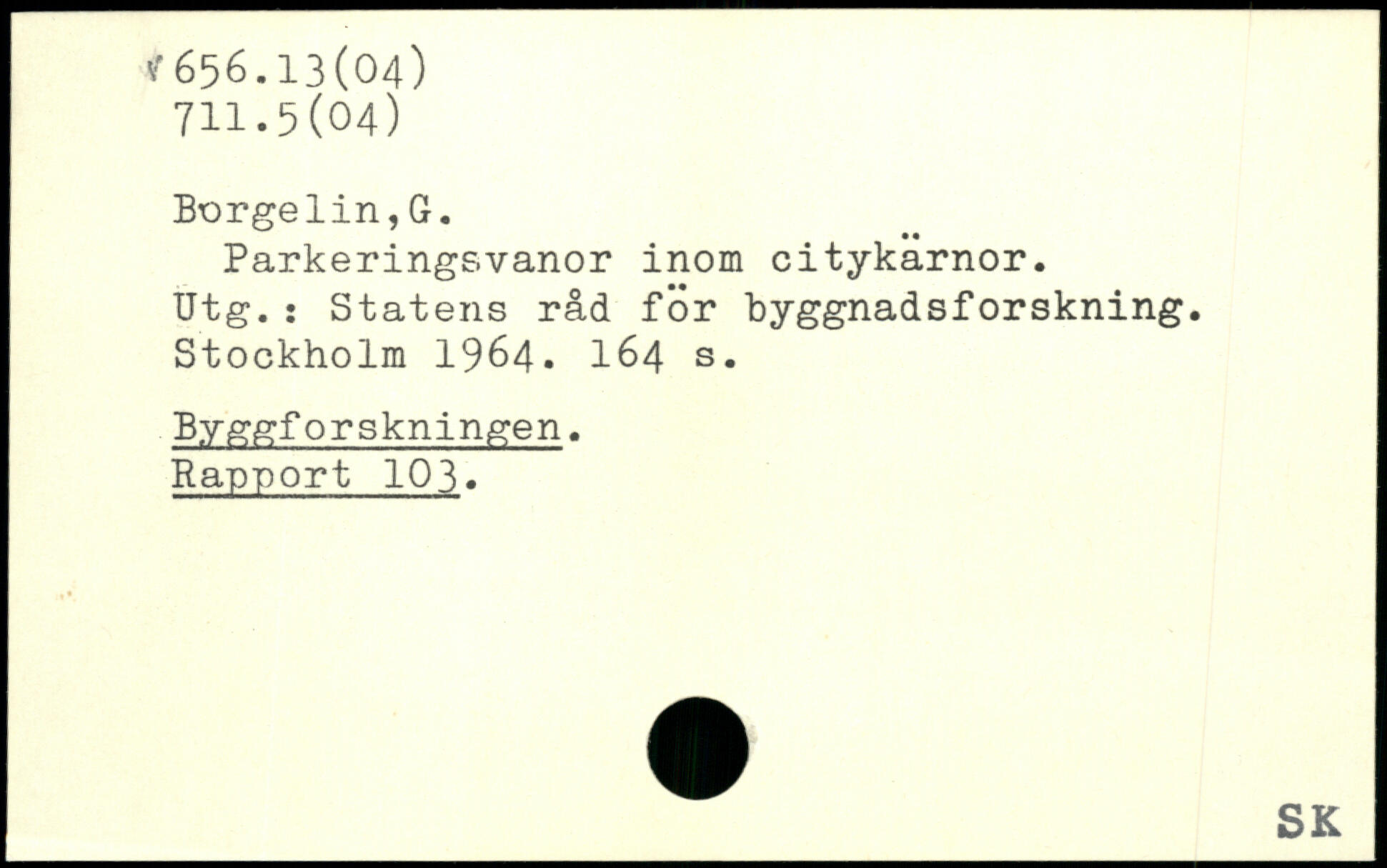 Parkeringsvanor inom citykarnor. Utg.ï Statens råd för byggnadsforskning.