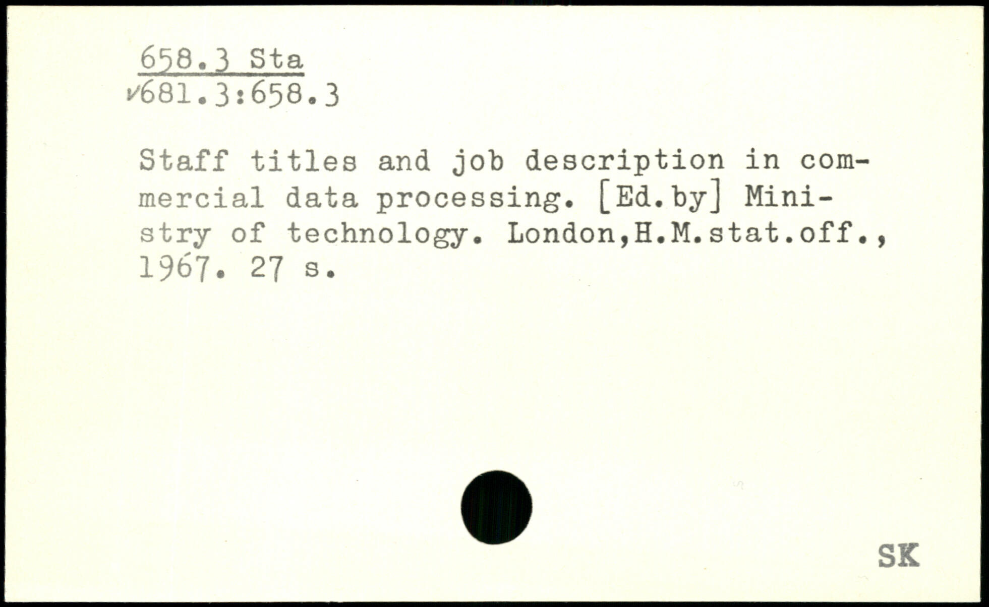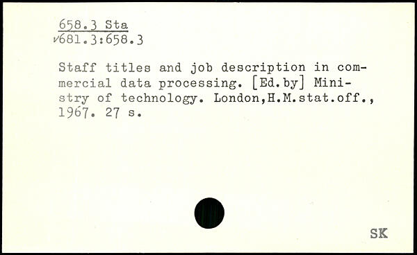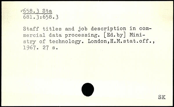 Staff titles and job description in commercial data processing. [Ed.by] Ministry of technology. London,H.M.stat.off., 1967.