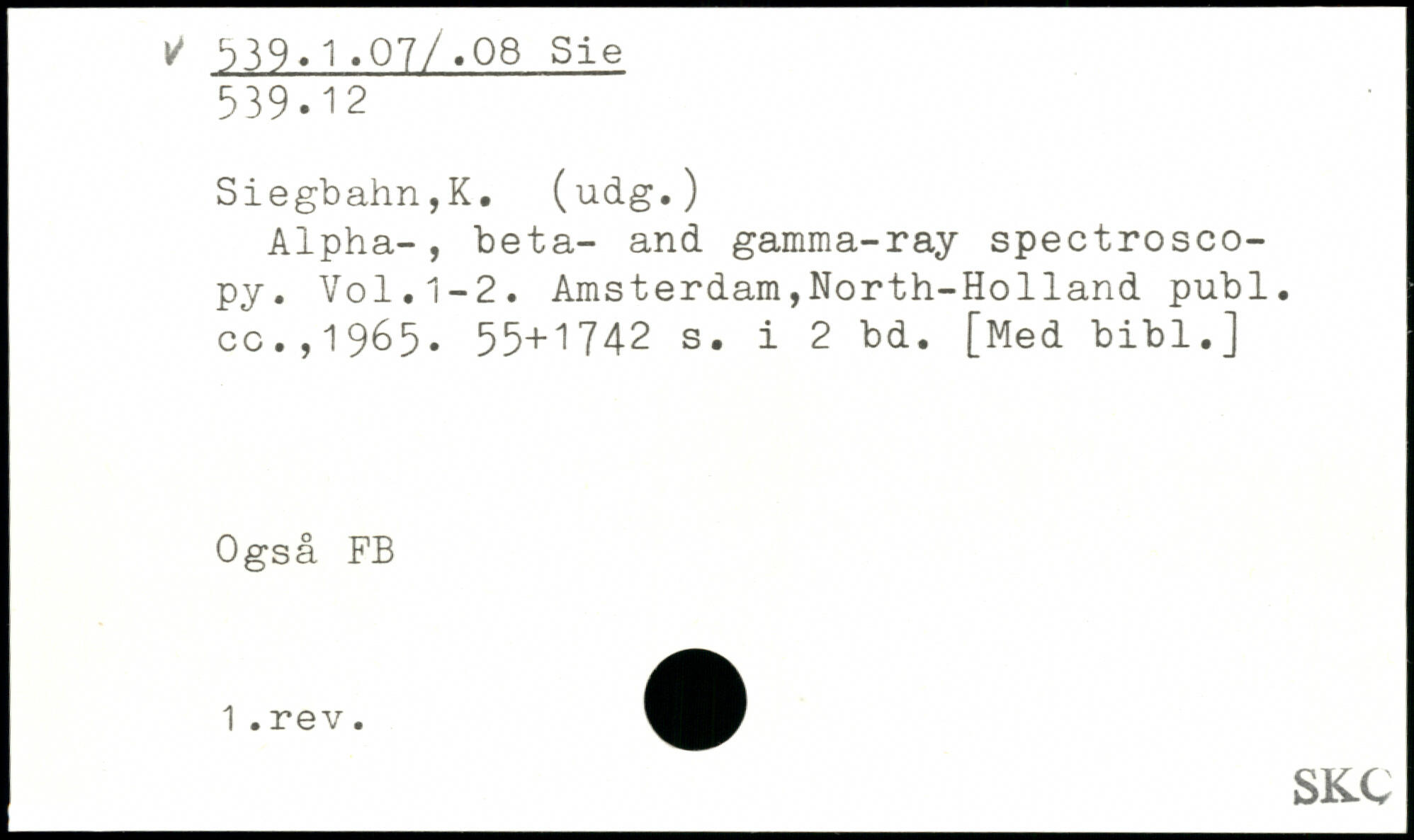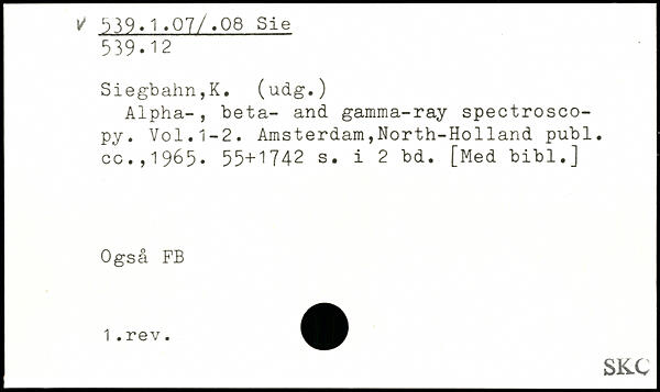 Alpha-, beta- and gamma-ray spectroscopy. Vol. 1-2. Amsterdam,North-Holland publ. cc.,1965.