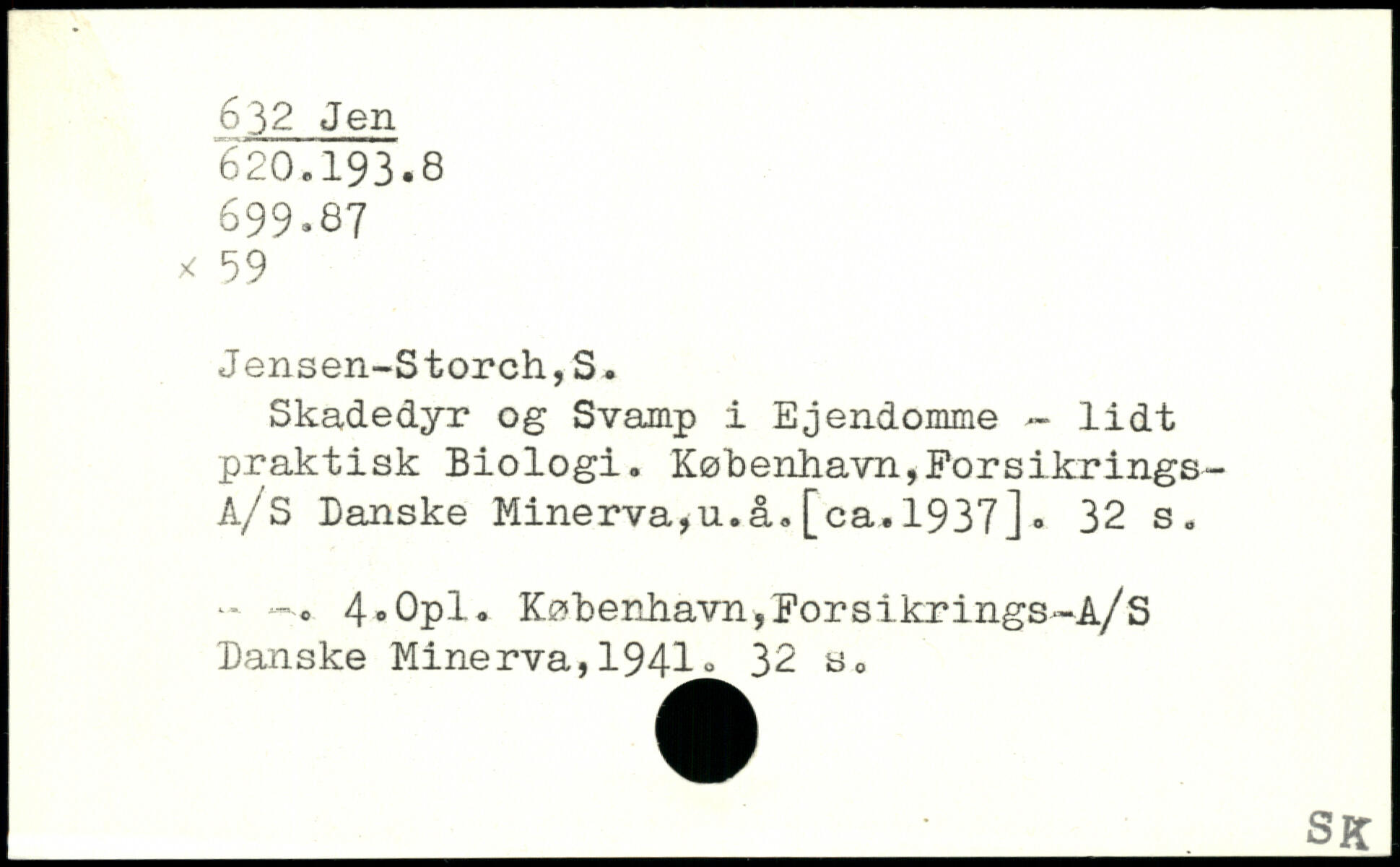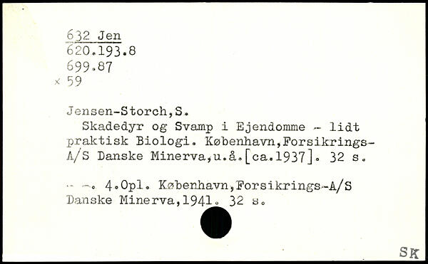 Skadedyr og Svamp i Ejendomme — lidt praktisk Biologi. København,Forsikrings-| A/S Danske Minerva,u.å.[ca.1937]