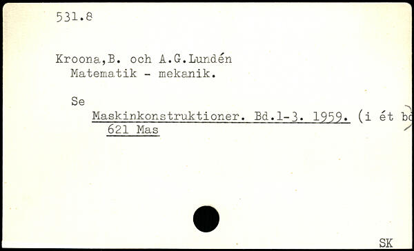 Kroona,B. och A.G.Lunden Matematik - mekanik. Se , Maskinkonstruktioner.