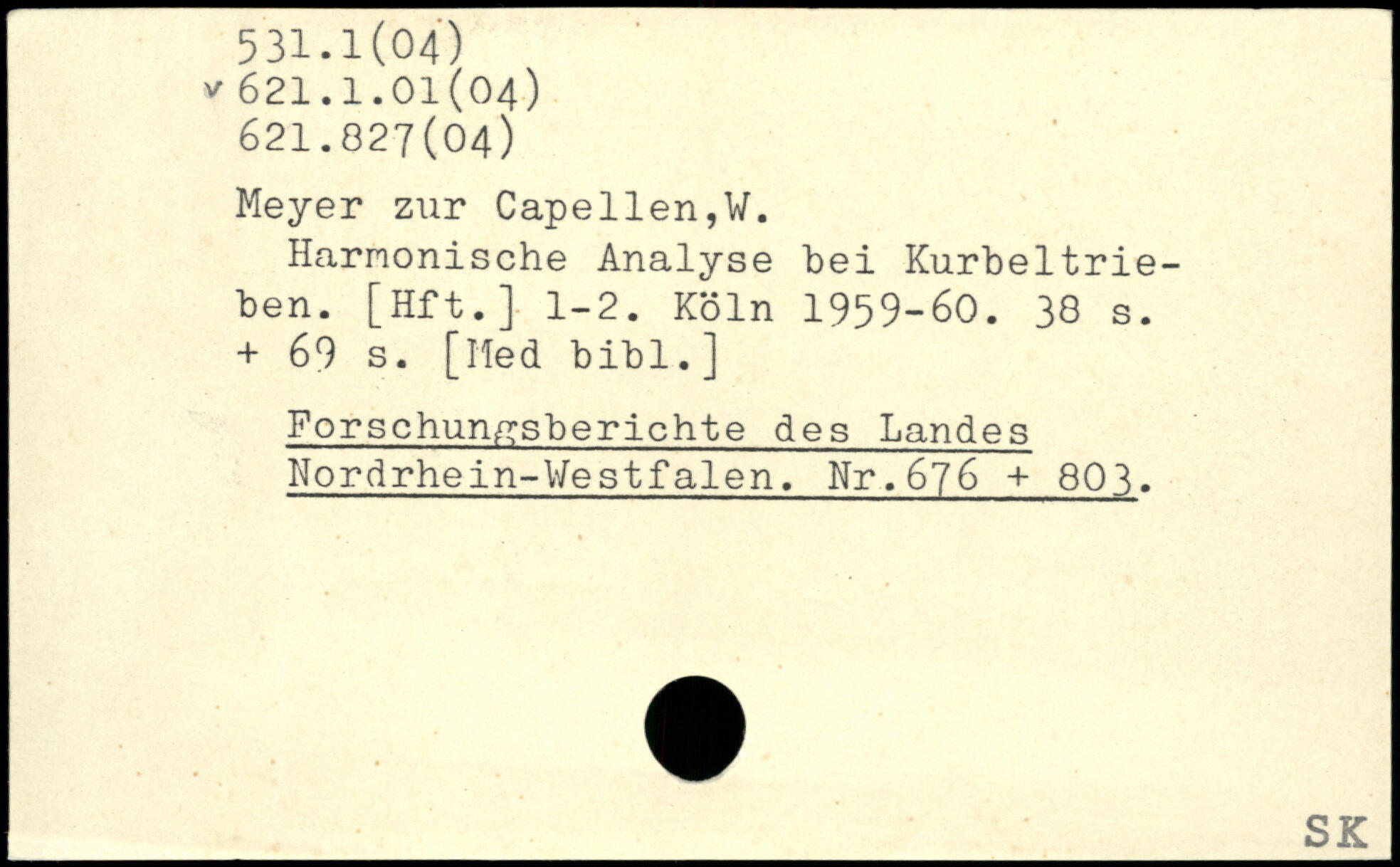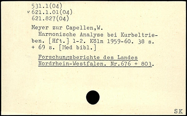 Meyer zur Capellen,V. Harnonische Analyse bei Kurbeltrieben. [Hft.] 1-2.